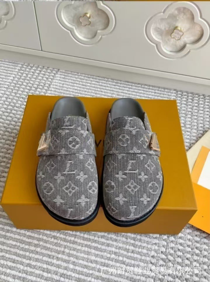 GMabcd Closed-Toe Shoes 2025 Retro Style Thick Sole Height-Increasing Buckle Casual Slip-On