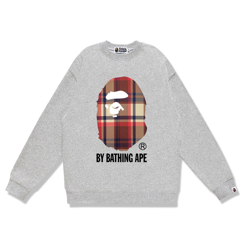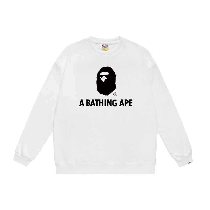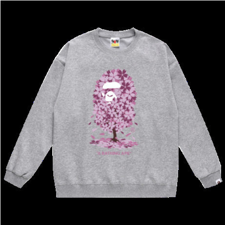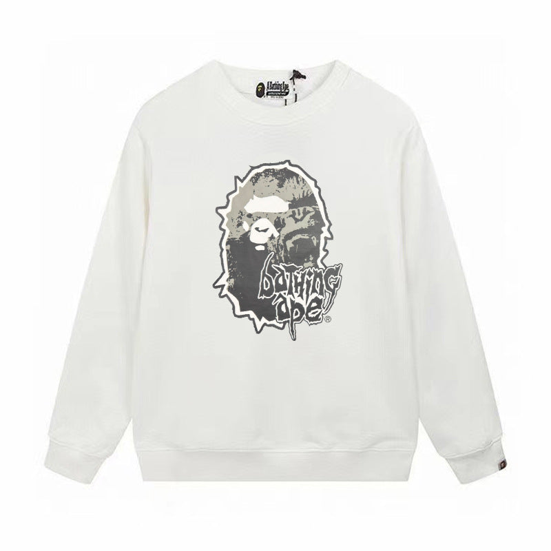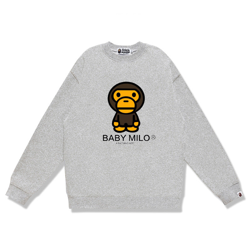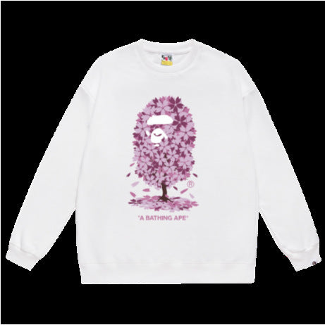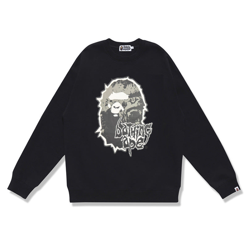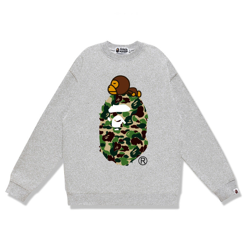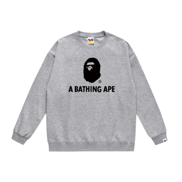 Terry Sweatshirt with Ape Man Letter Print, Unisex, Pure Cotton, Loose Fit, Thin, Crew Neck Pullover Top, Outerwear