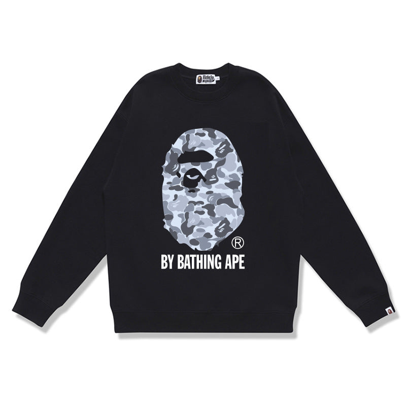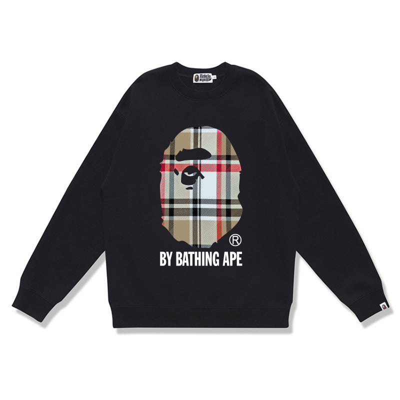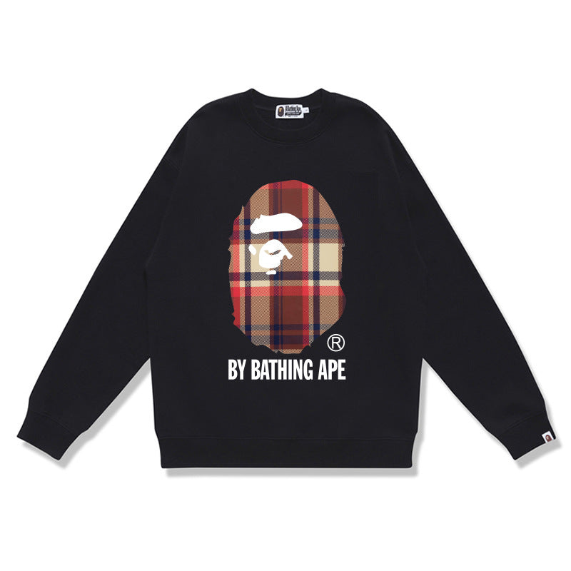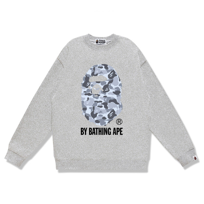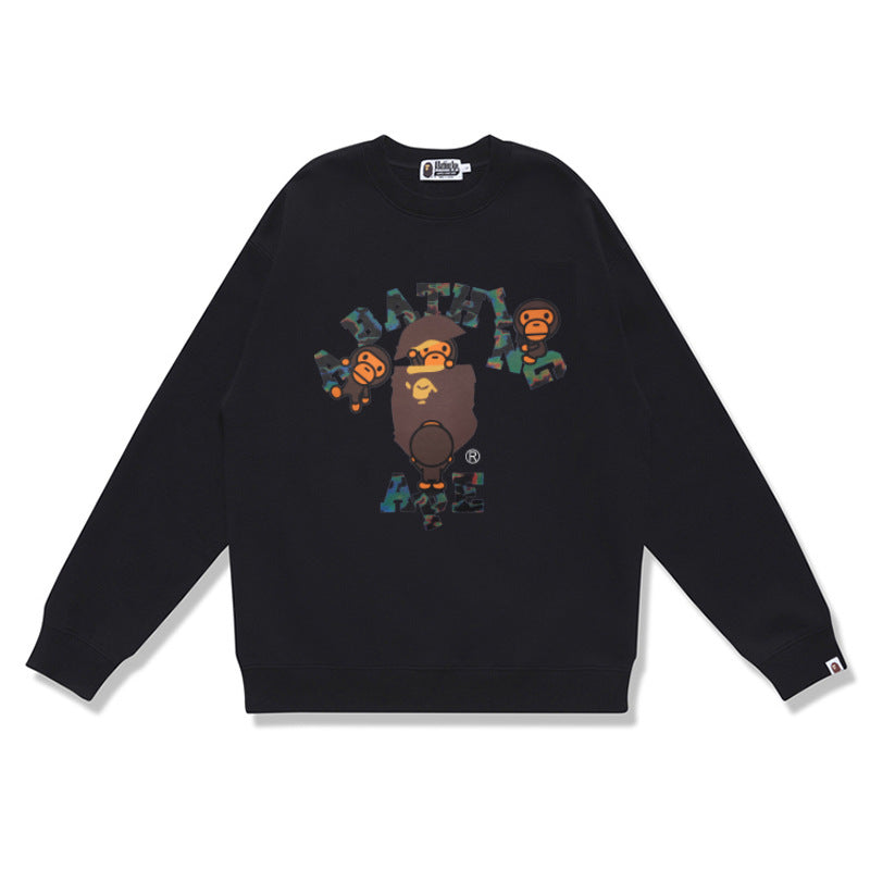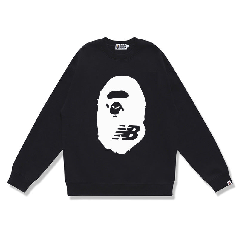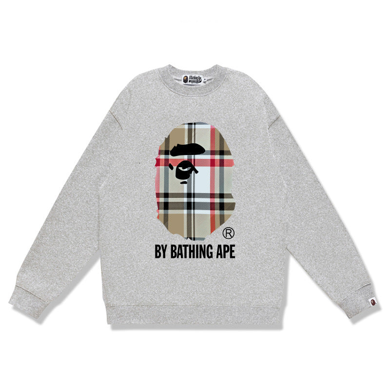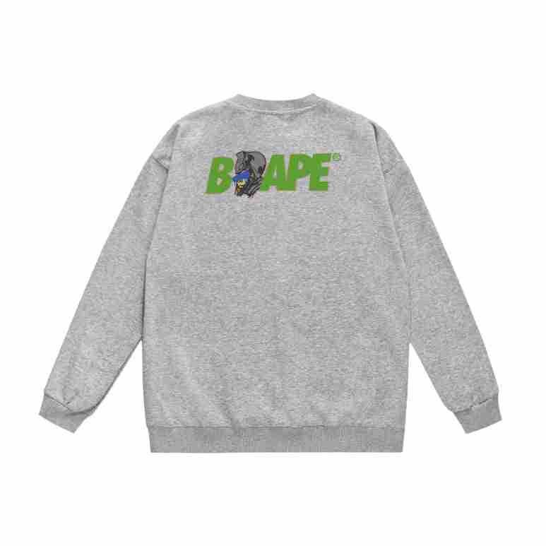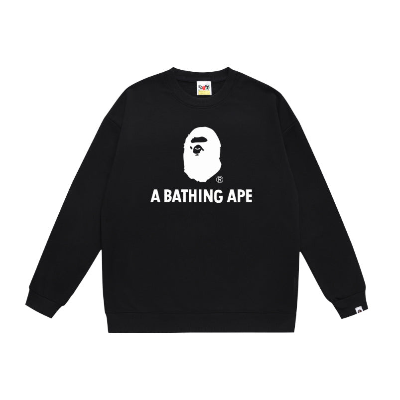 Terry Sweatshirt with Ape Man Letter Print, Unisex, Pure Cotton, Loose Fit, Thin, Crew Neck Pullover Top, Outerwear