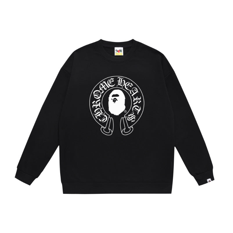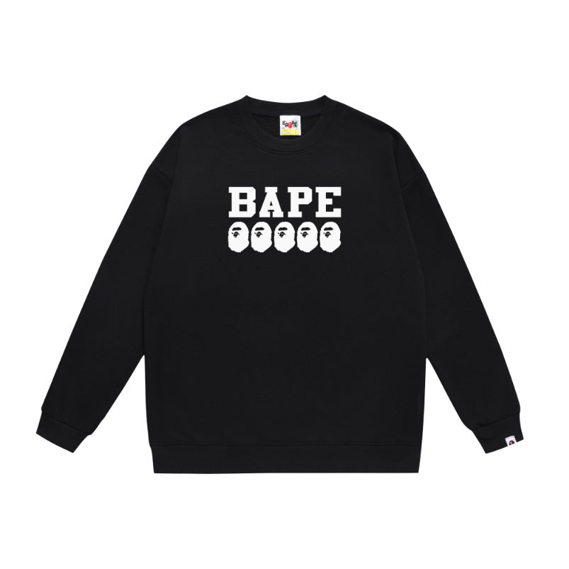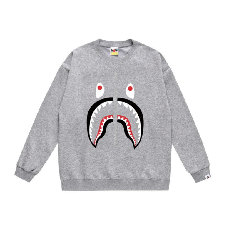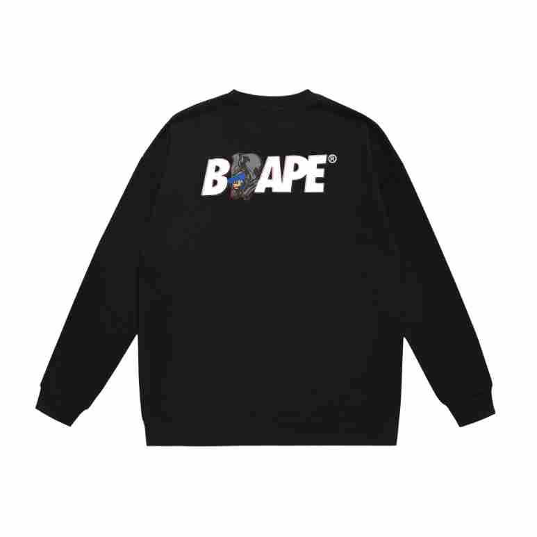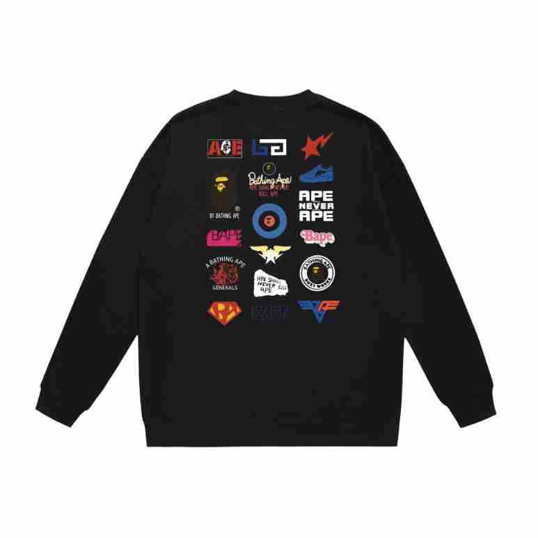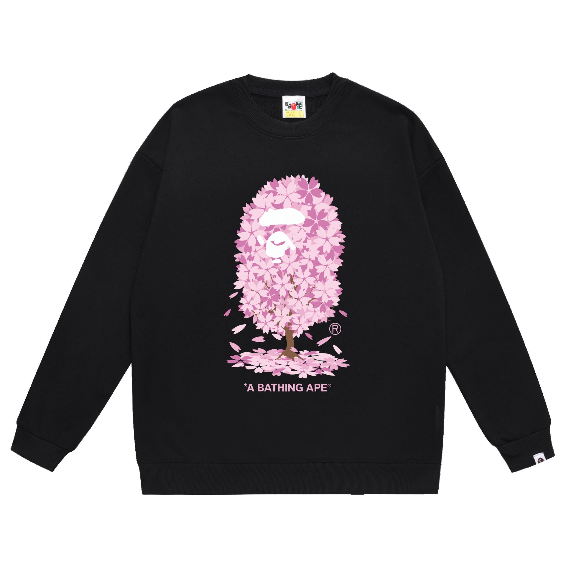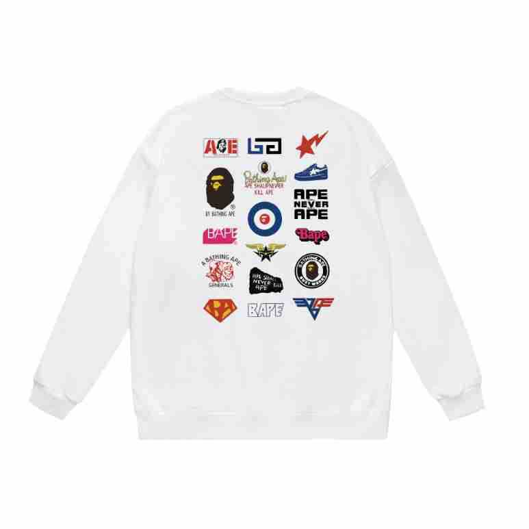 Terry Sweatshirt with Ape Man Letter Print, Unisex, Pure Cotton, Loose Fit, Thin, Crew Neck Pullover Top, Outerwear
