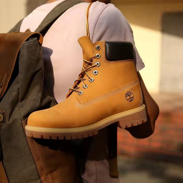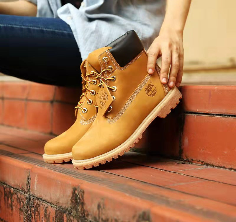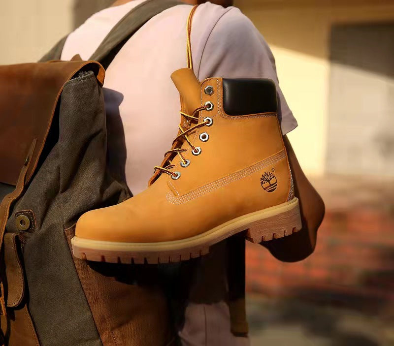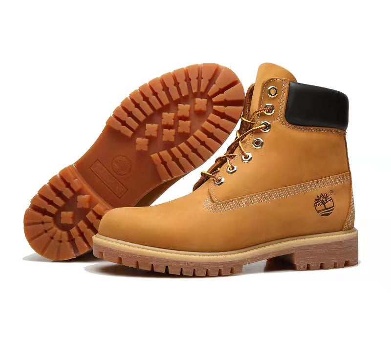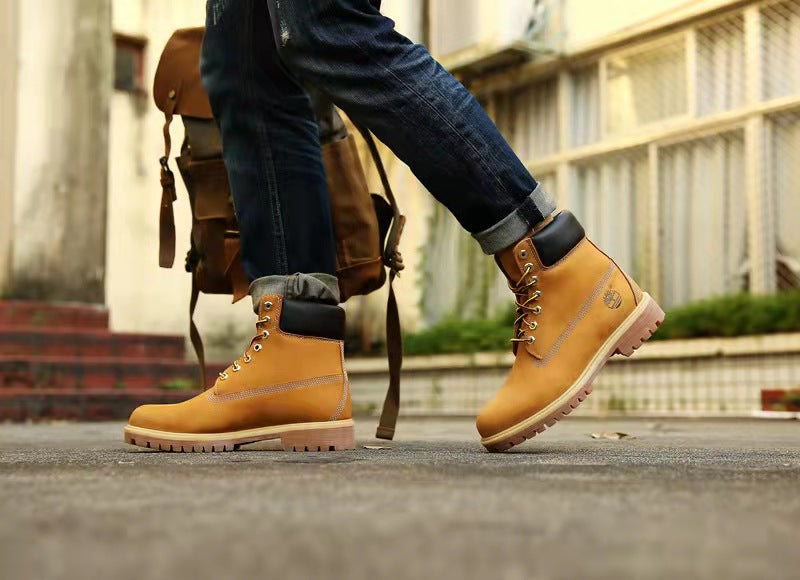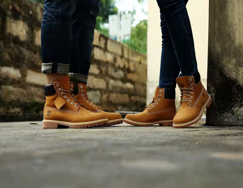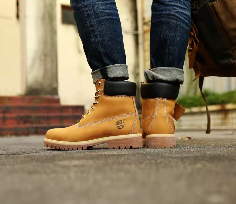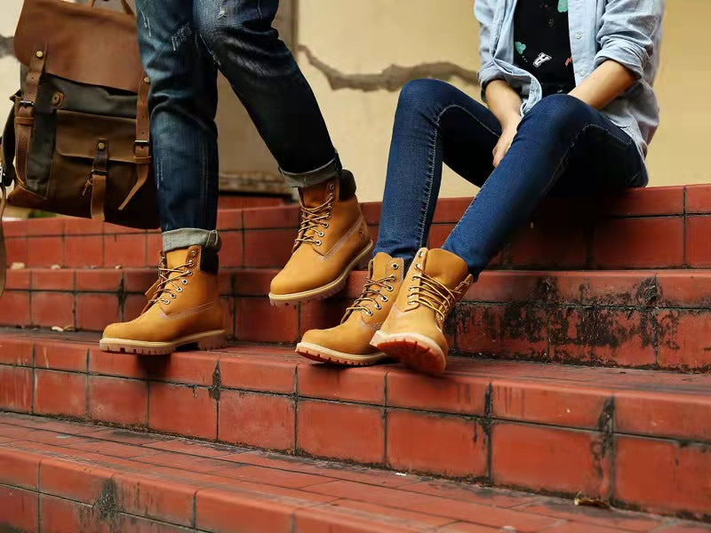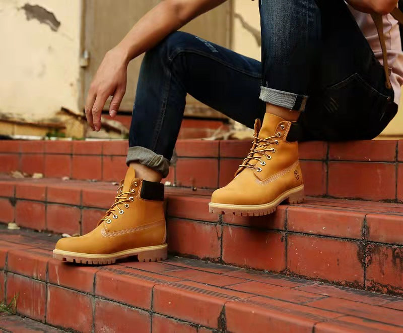 GMABCD Classic Yellow Boots Thick-Soled Martin Boots Men's Couple First Layer Cowhide Outdoor High-Top Boots