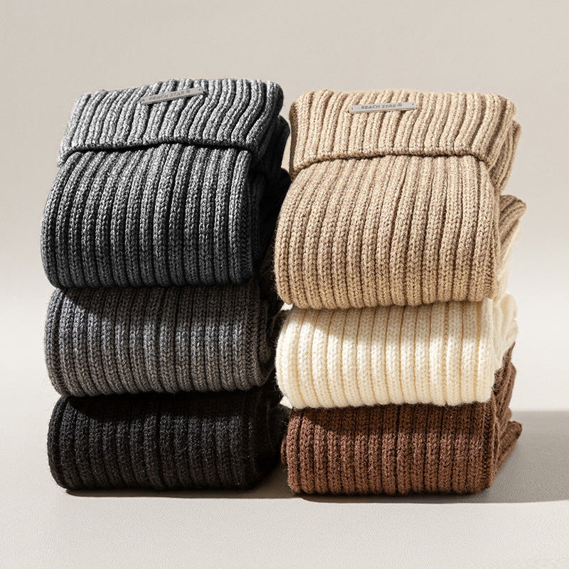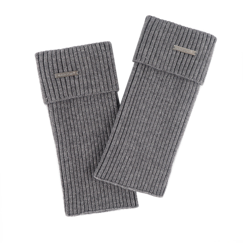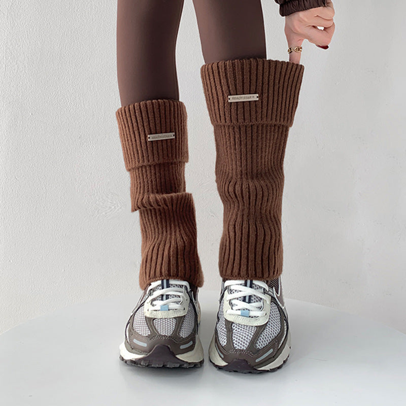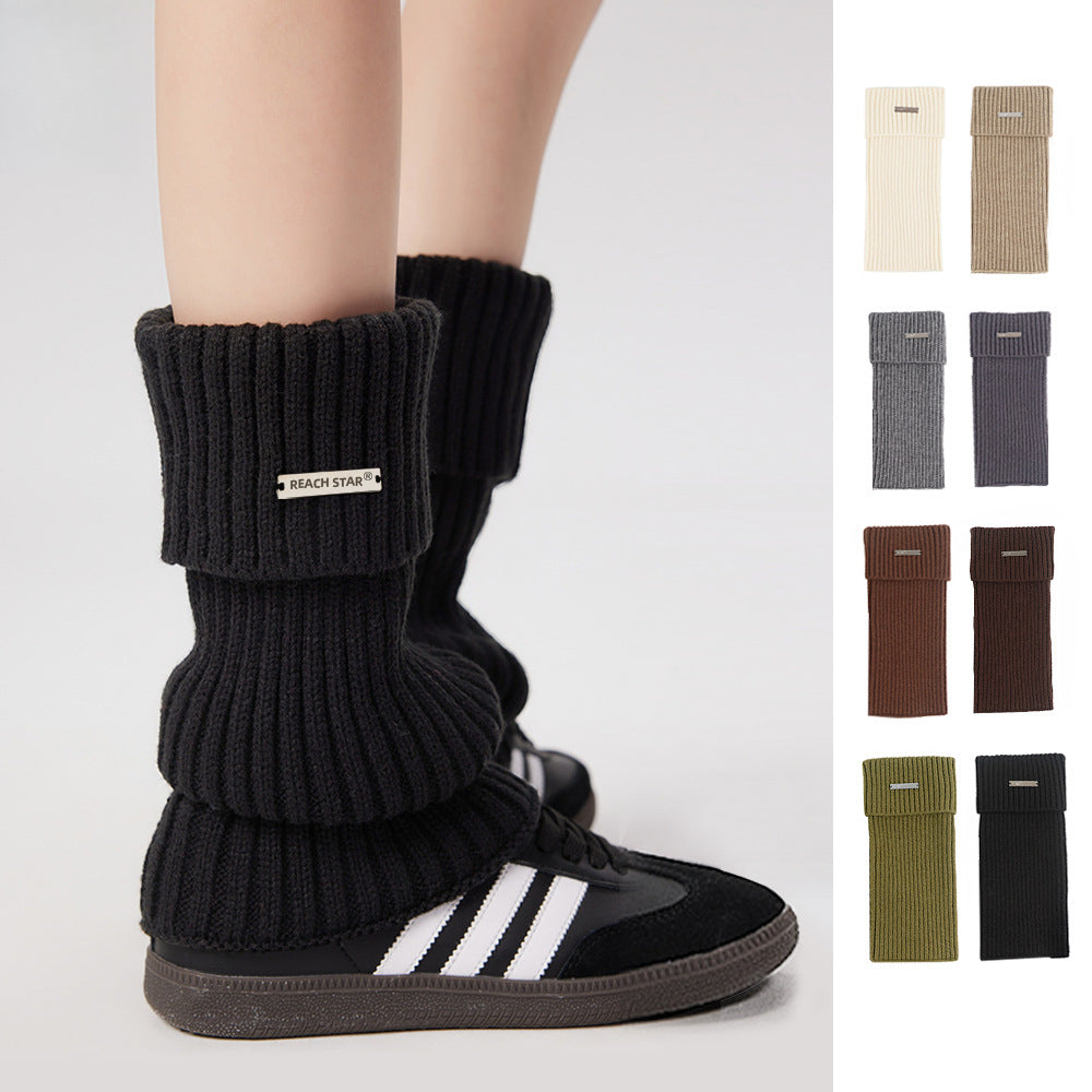 Autumn and Winter Thick Warm Leg Warmer Knitted Leg Warmers Y2g Hot Girl Personality Metal Label Double Needle Thick Thread Flip Bunching Socks