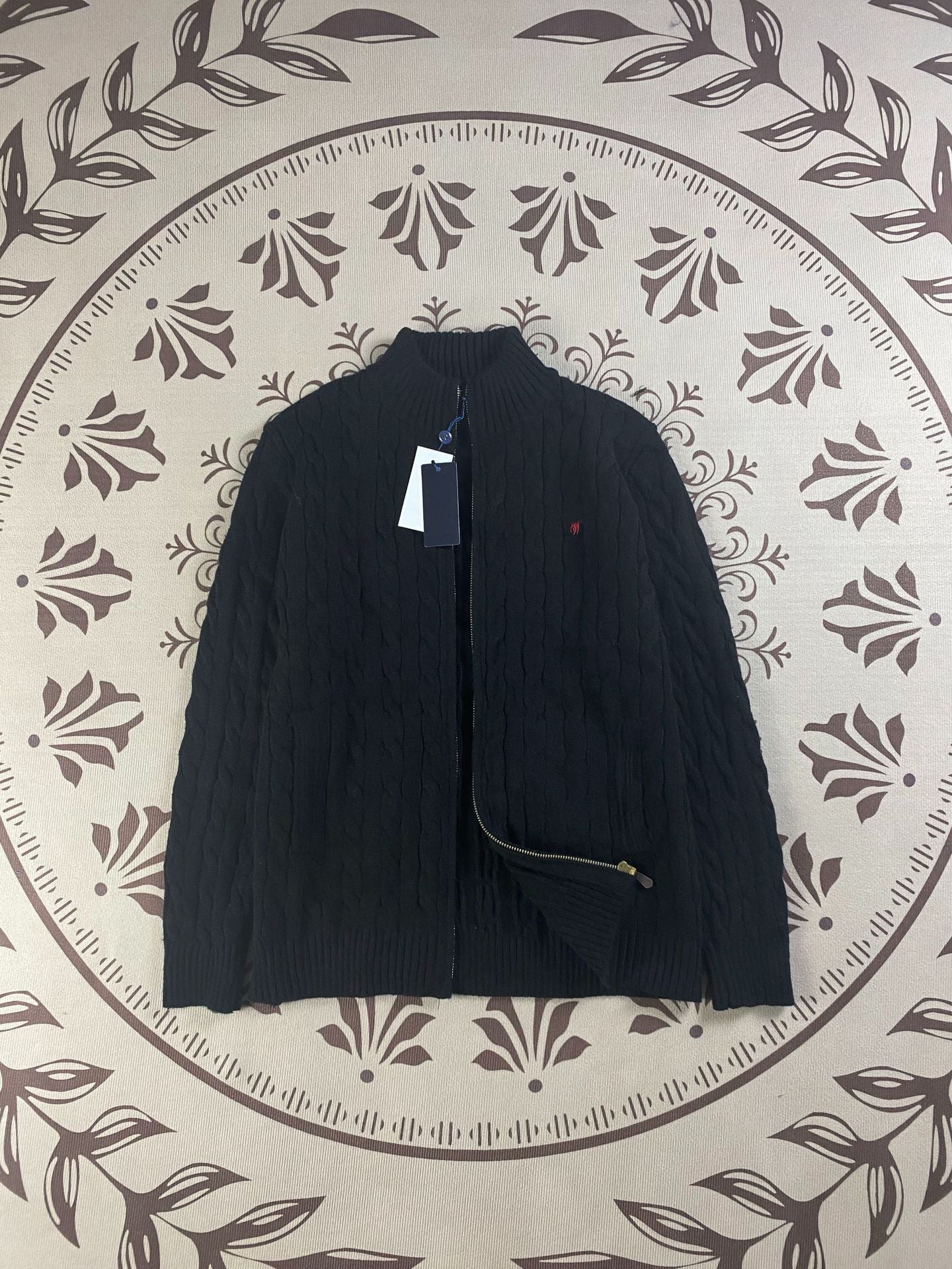RL Raff Pony Label Autumn Winter Warm Cable Knit Zipper Sweater Cardigan Women Embroidered Cable Cardigan Men