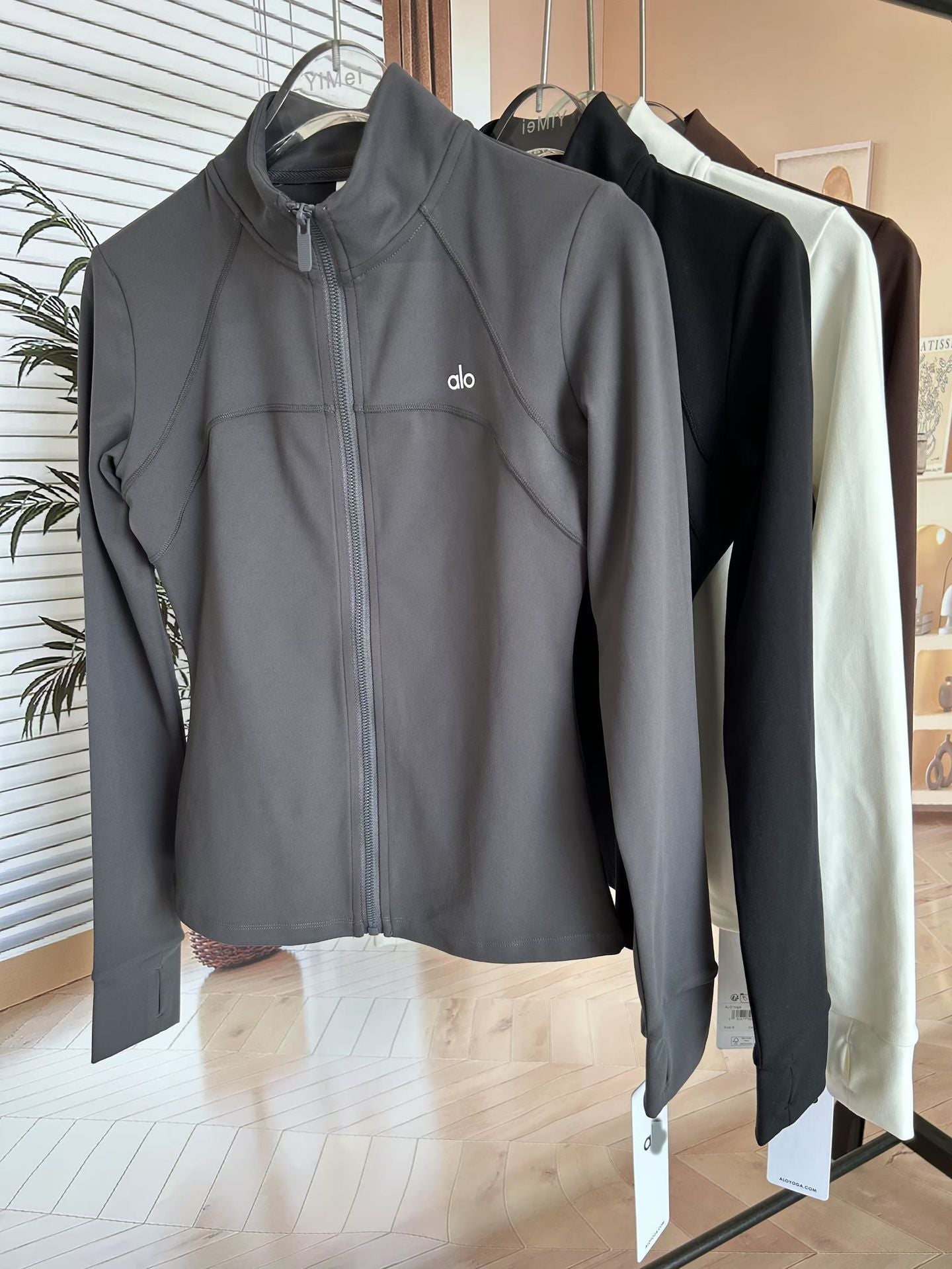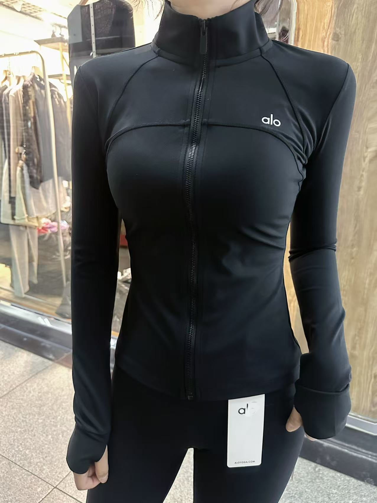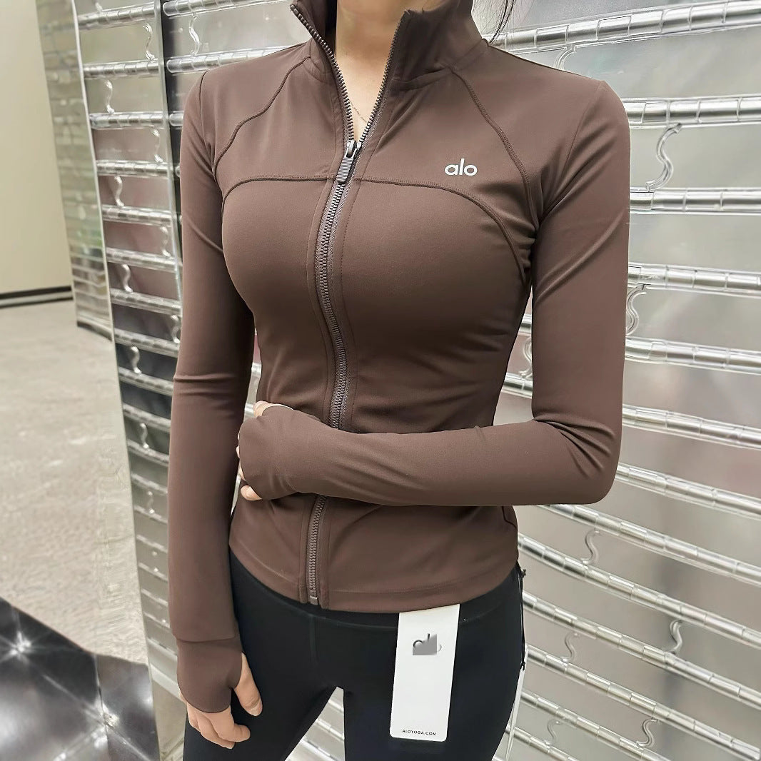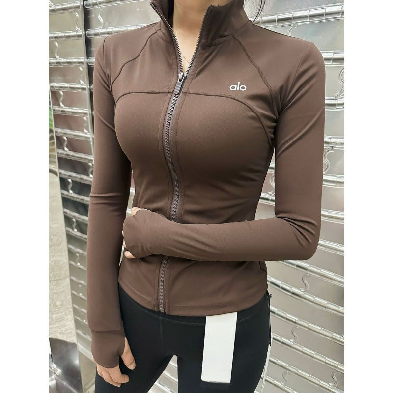 A-L-O Yoga Yoga Wear Stand Collar Sports Jacket Women Slimming Versatile Fitness Wear Stretchy Tight Long Sleeve