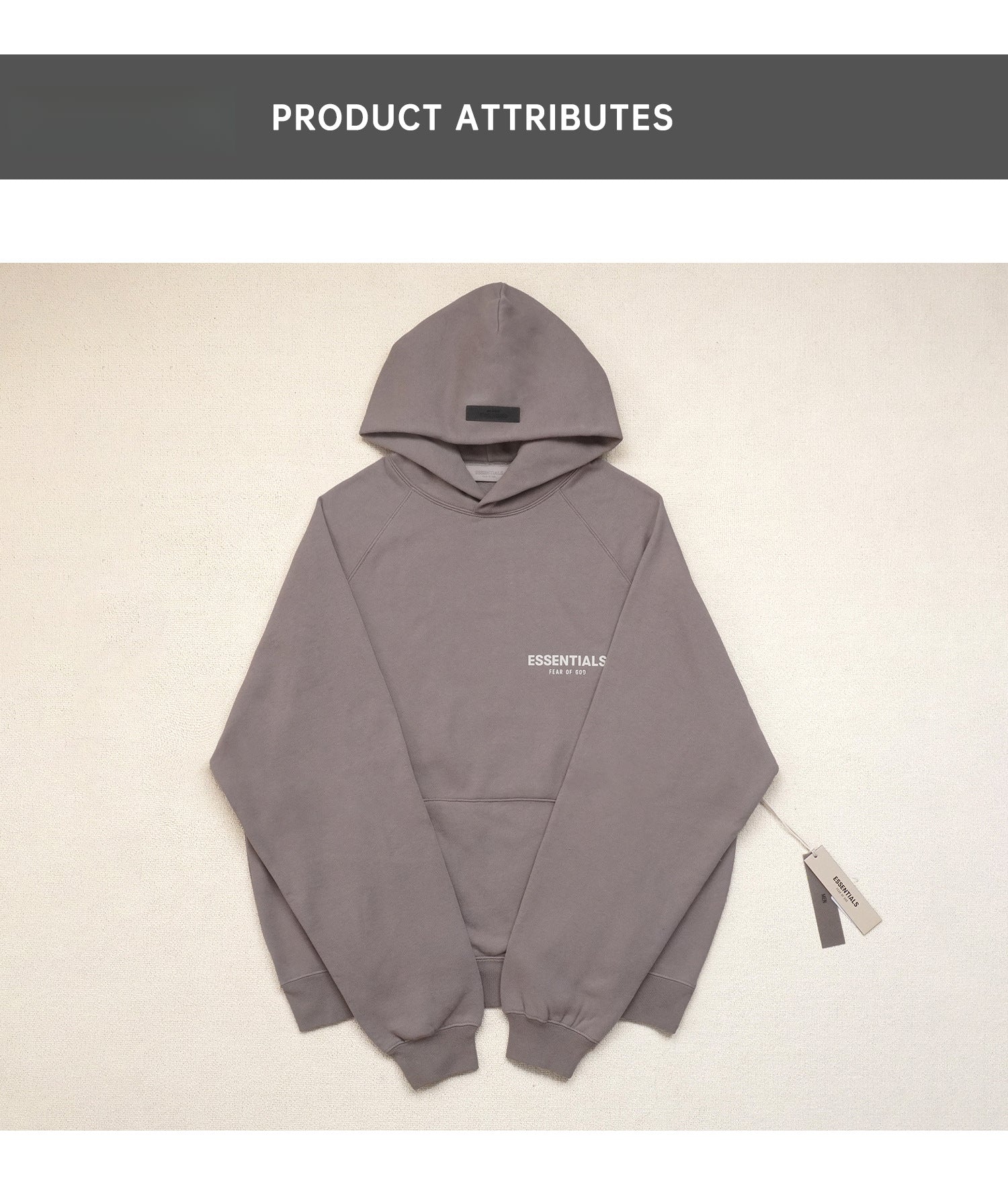 ESSENTIALS HOODIE FOG Season 8 Flocked Small Label Versatile Hooded Sweatshirt Fleece Lined