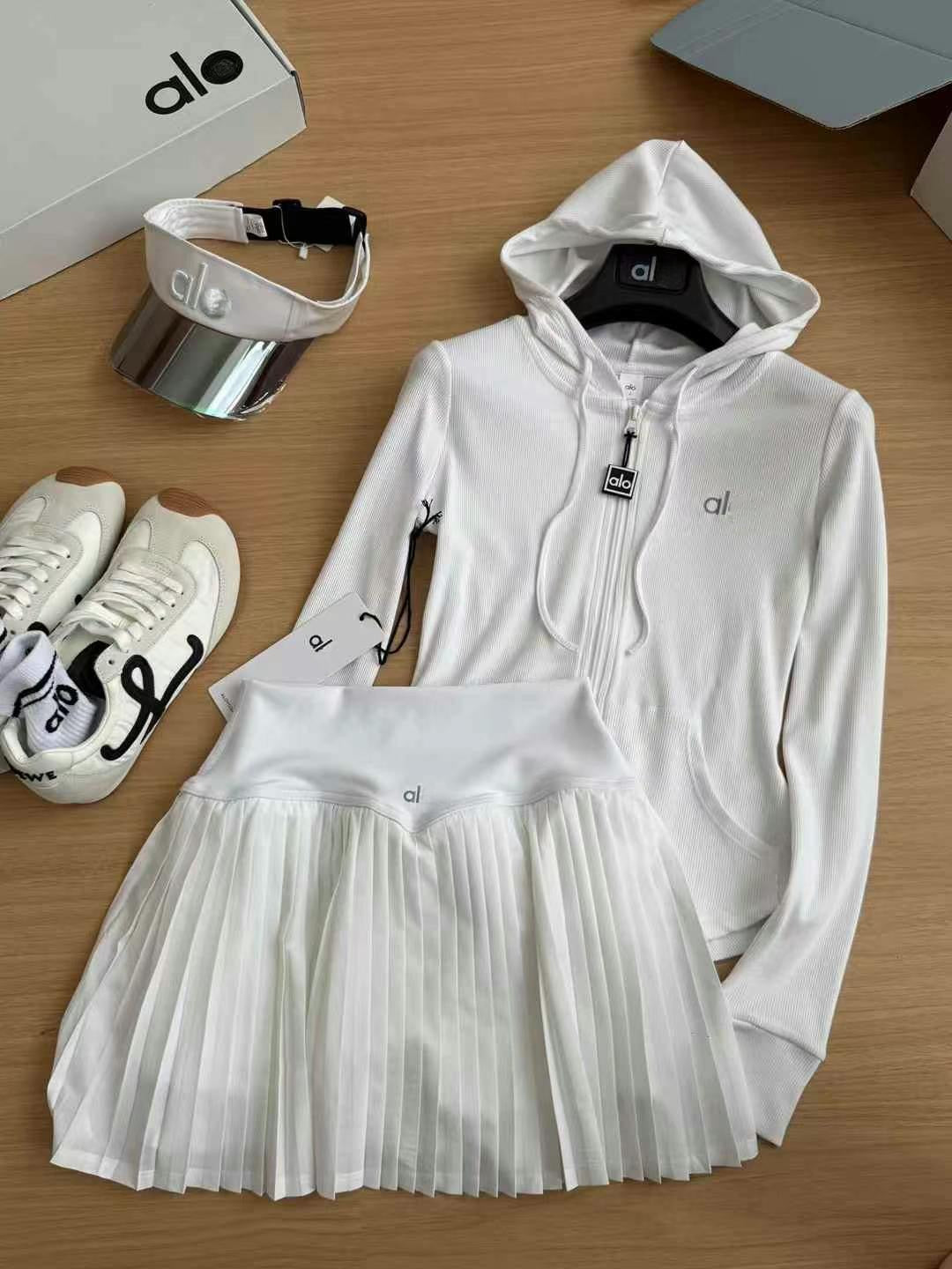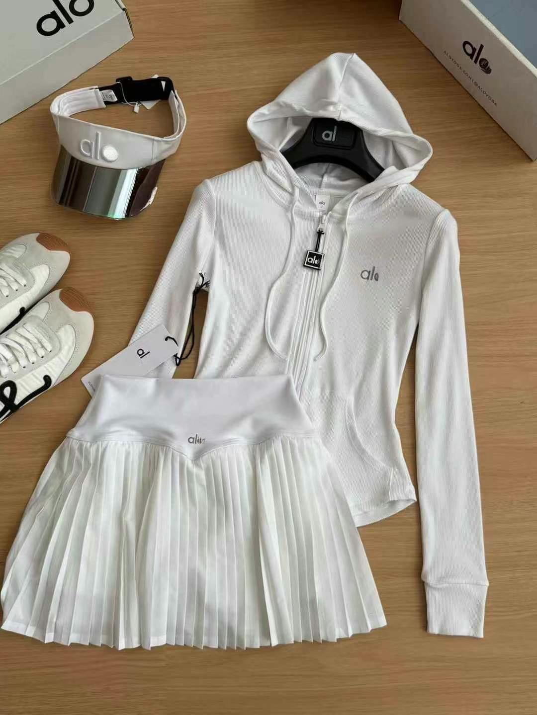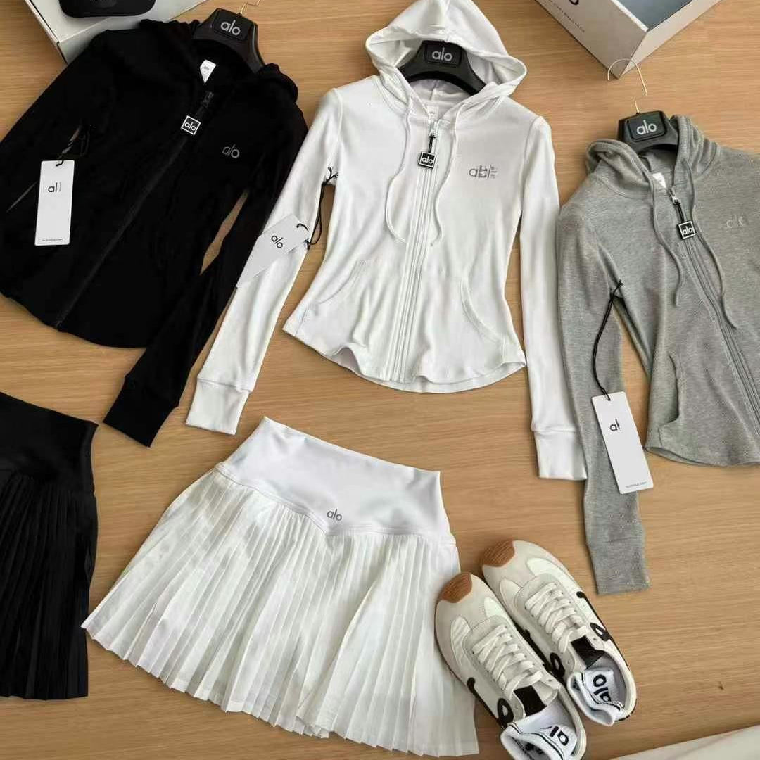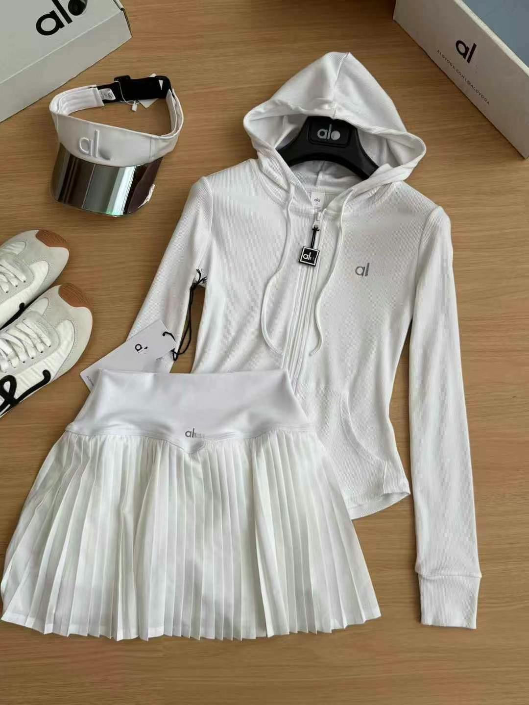 A-L High-Quality Hooded Zipper Jacket and Pleated Skirt Set Two-Piece Slim Fit Versatile Yoga Sports