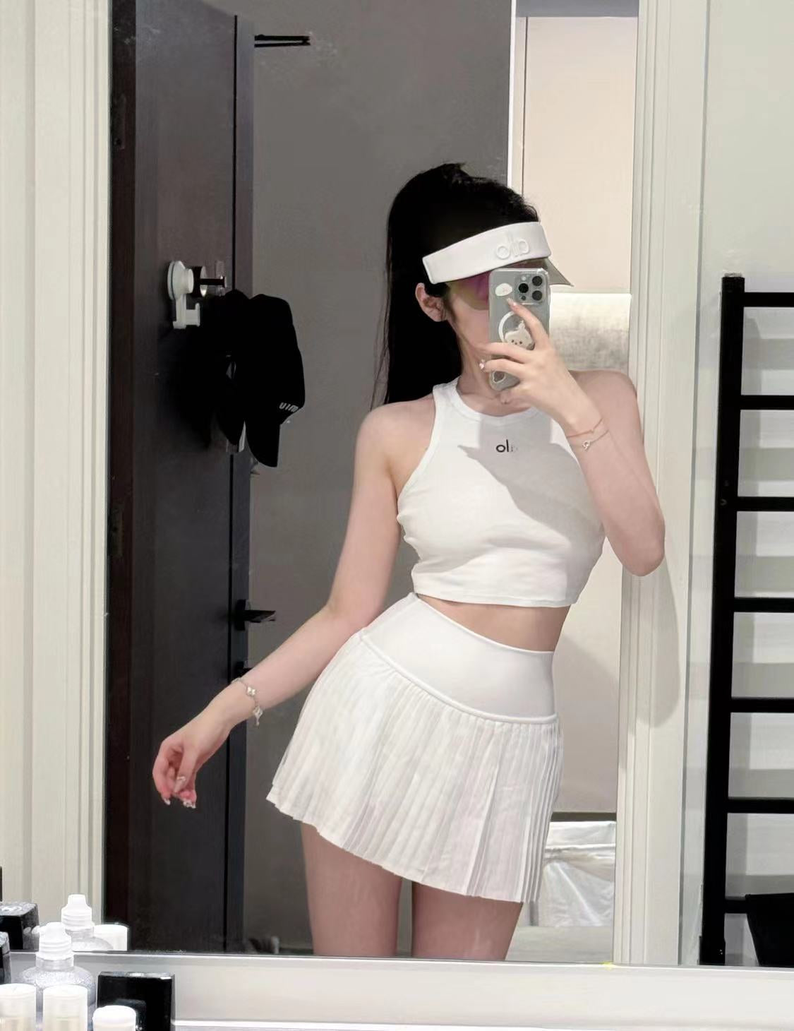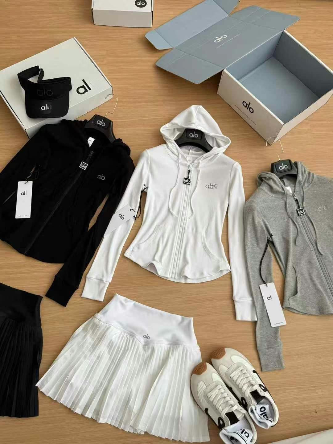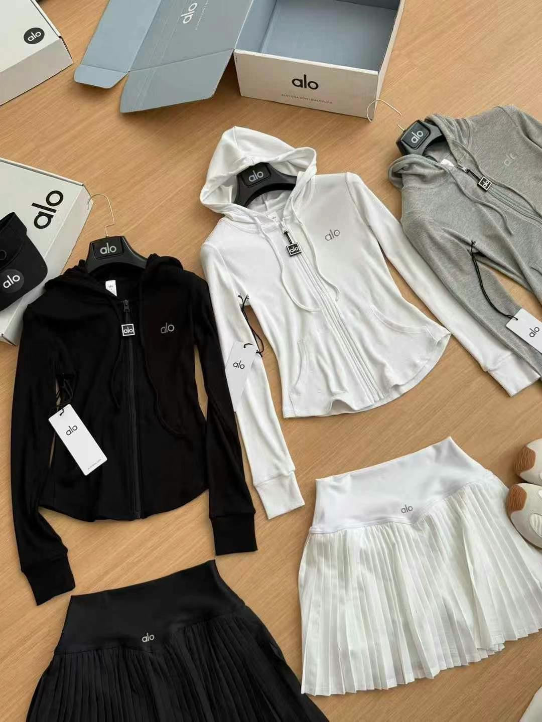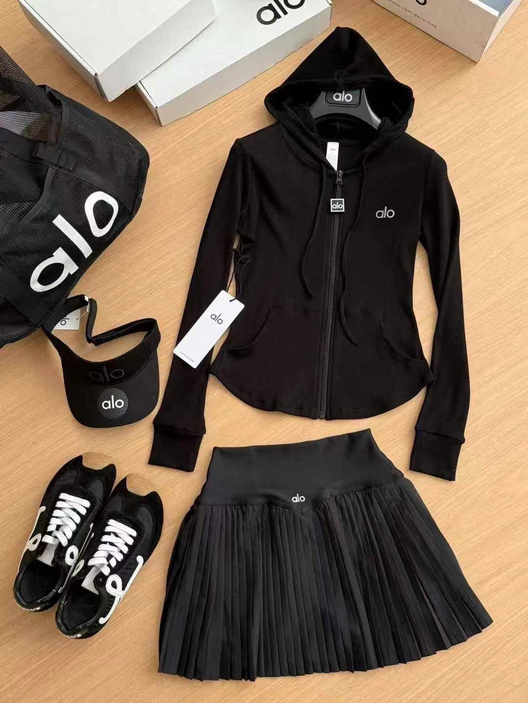 A-L High-Quality Hooded Zipper Jacket and Pleated Skirt Set Two-Piece Slim Fit Versatile Yoga Sports