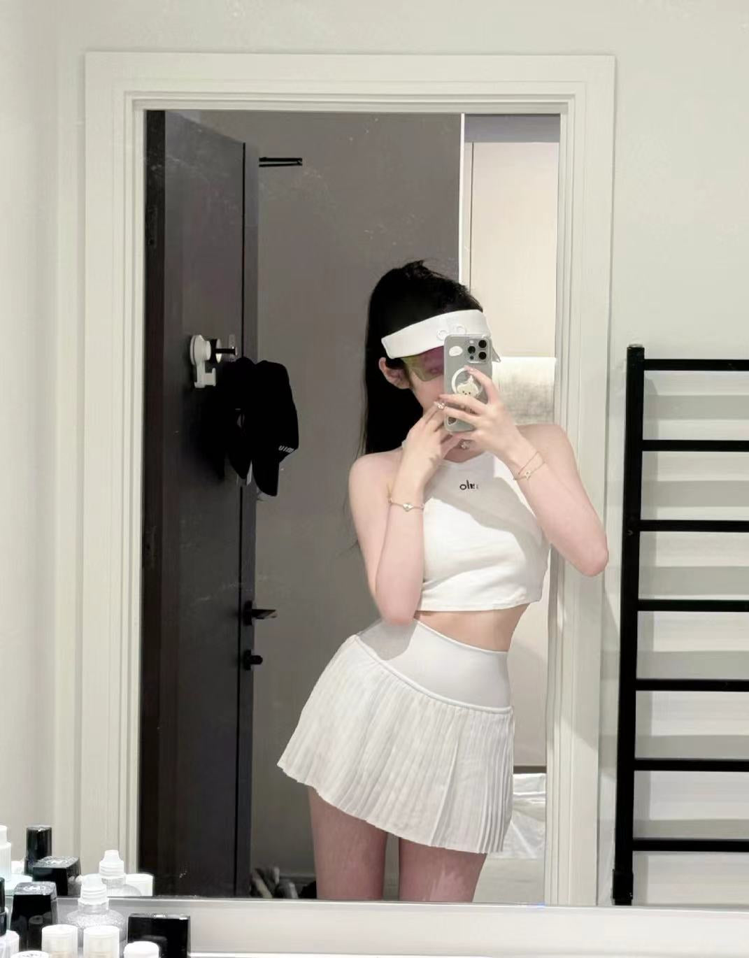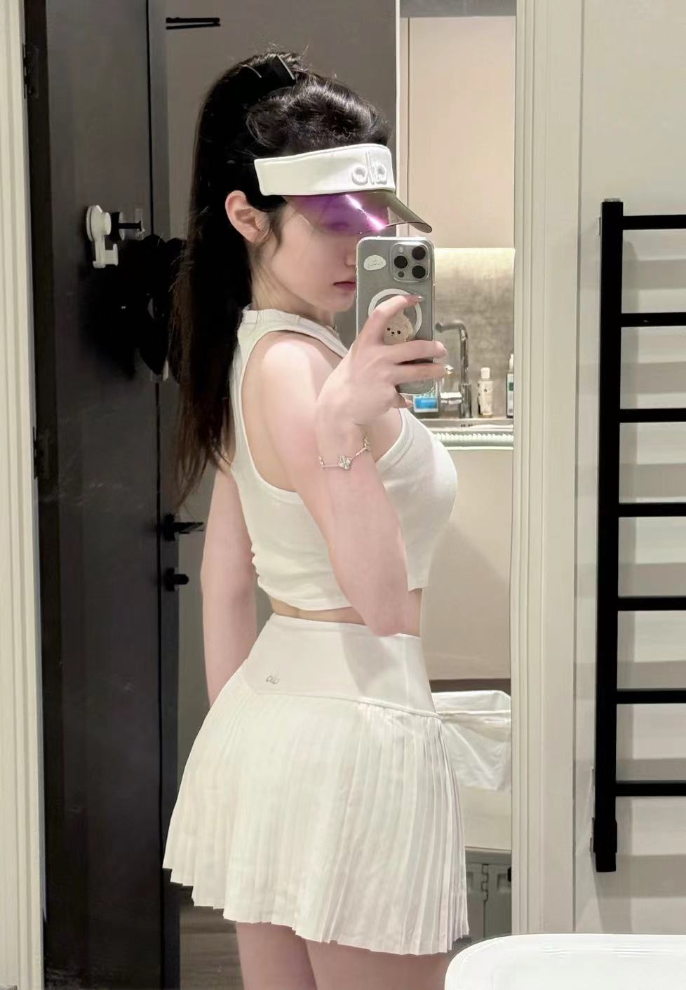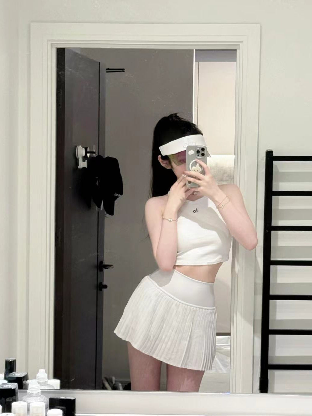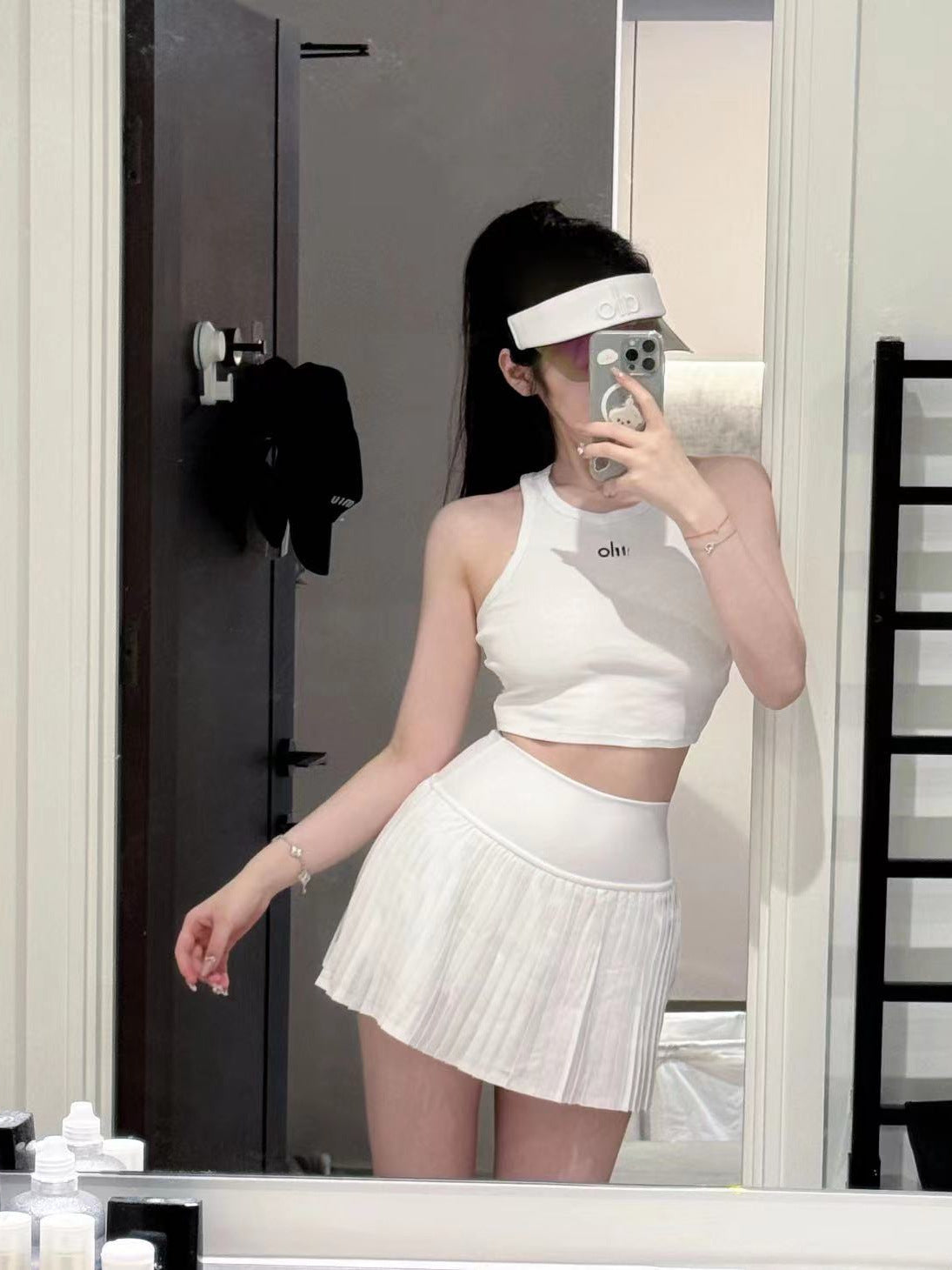 A-L High-Quality Hooded Zipper Jacket and Pleated Skirt Set Two-Piece Slim Fit Versatile Yoga Sports
