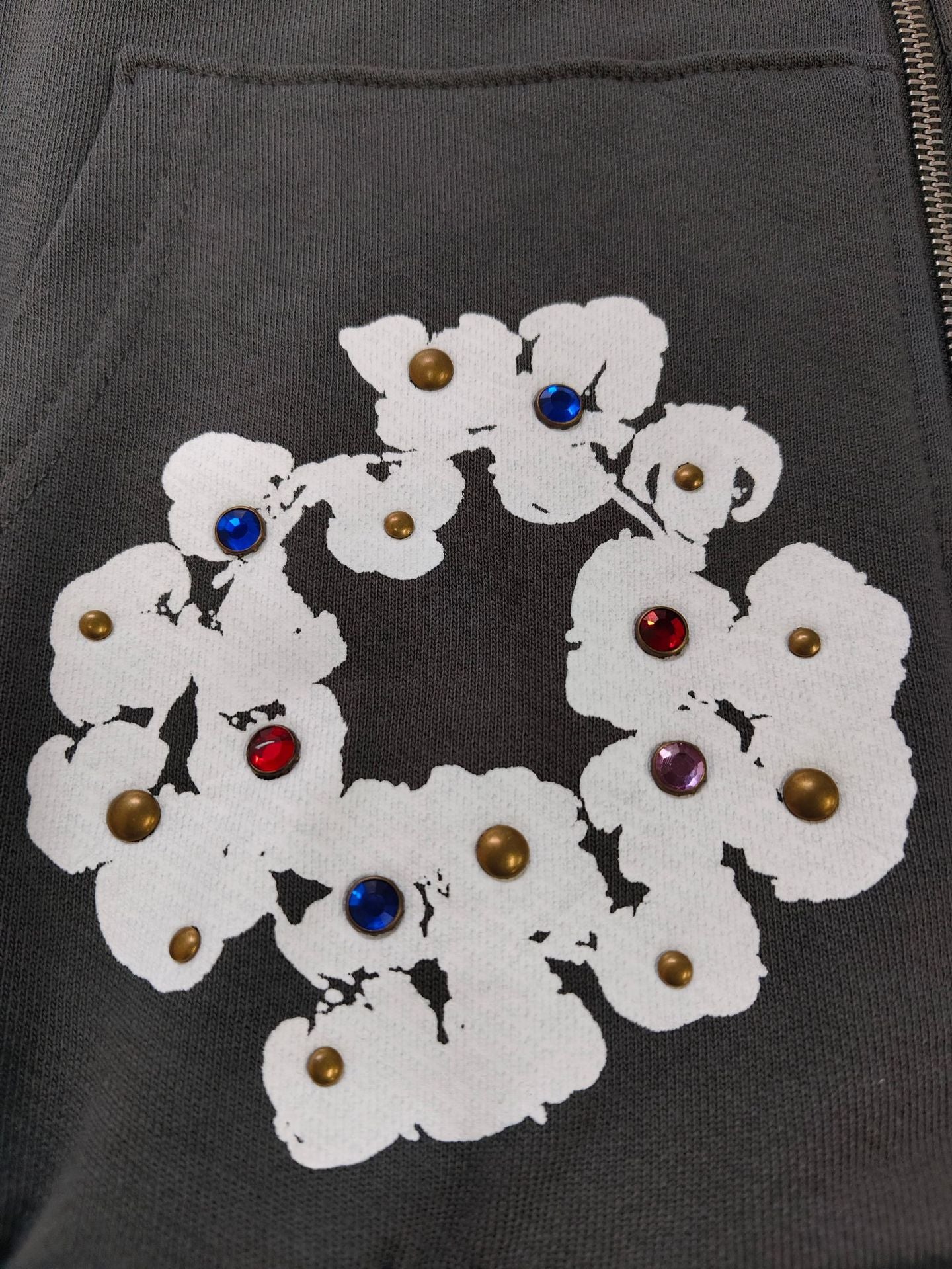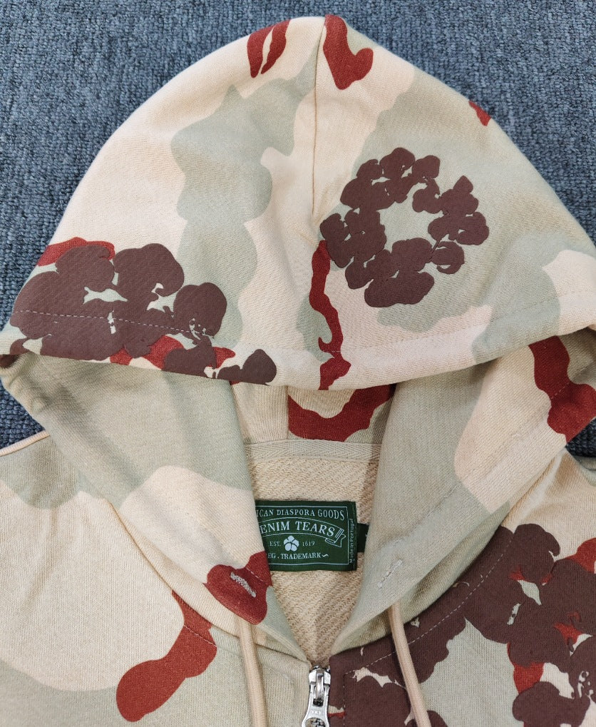 DENIM TEARS Gemstone Kapok Hoodie Trendy Brand Casual Zipper Jacket Hooded Sweatshirt
