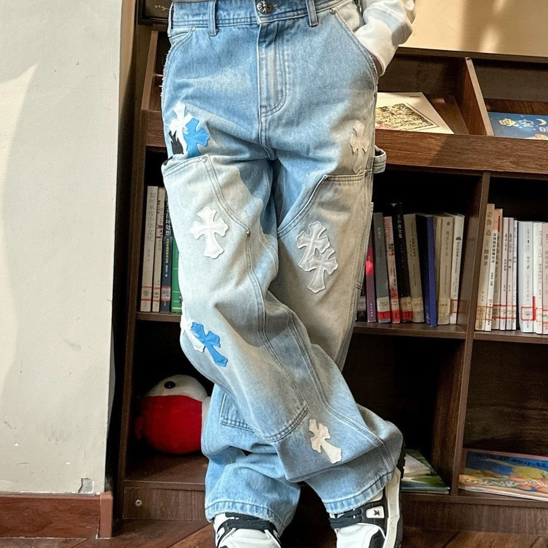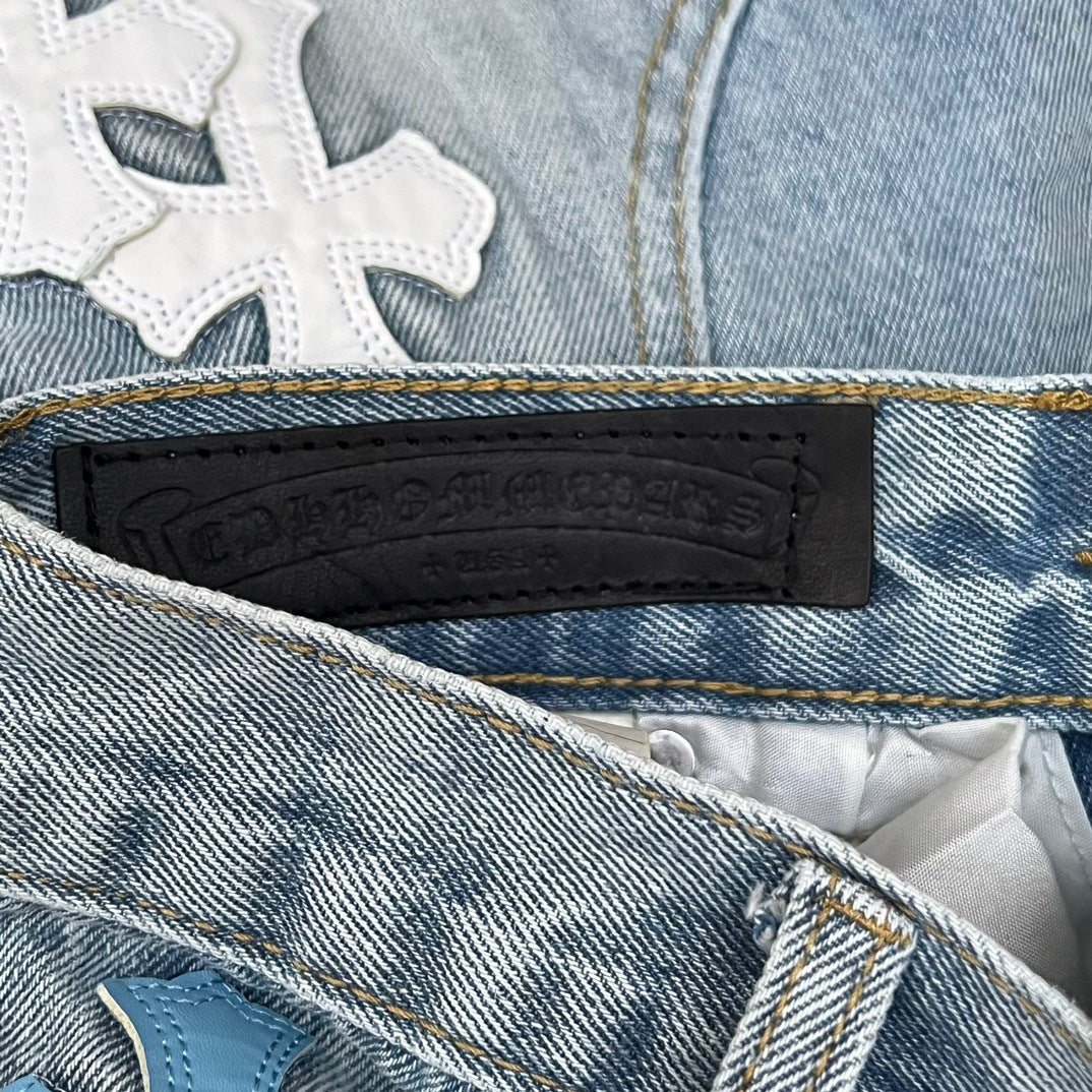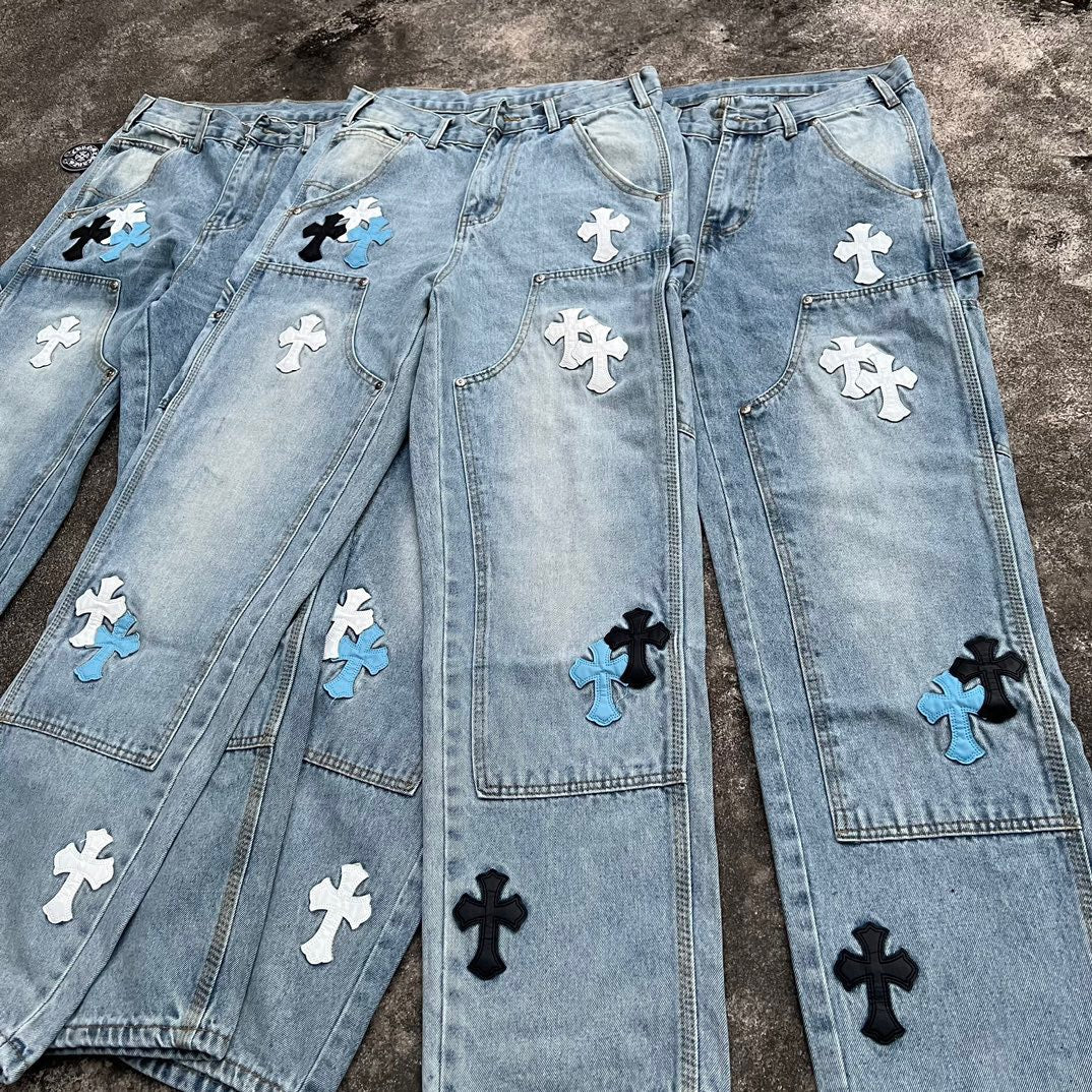 Top Heavy Industry Crafted CH Double Knee Cross Patch Leather B01 Version Logging Pants Straight Leg Sanskrit Workwear Pants High Street Jeans