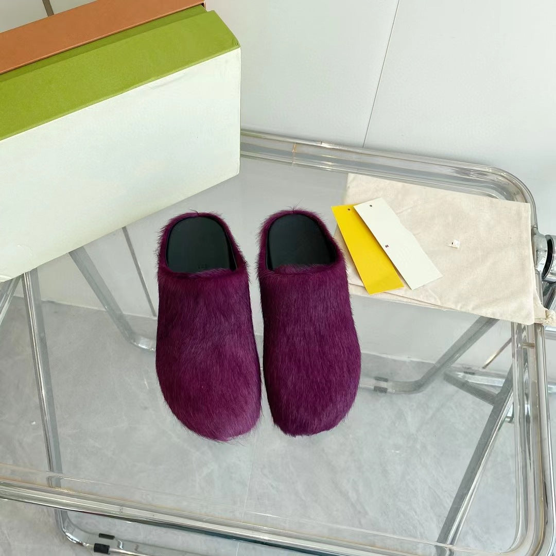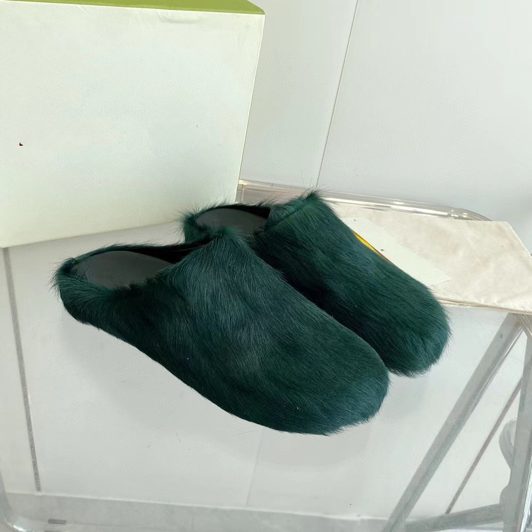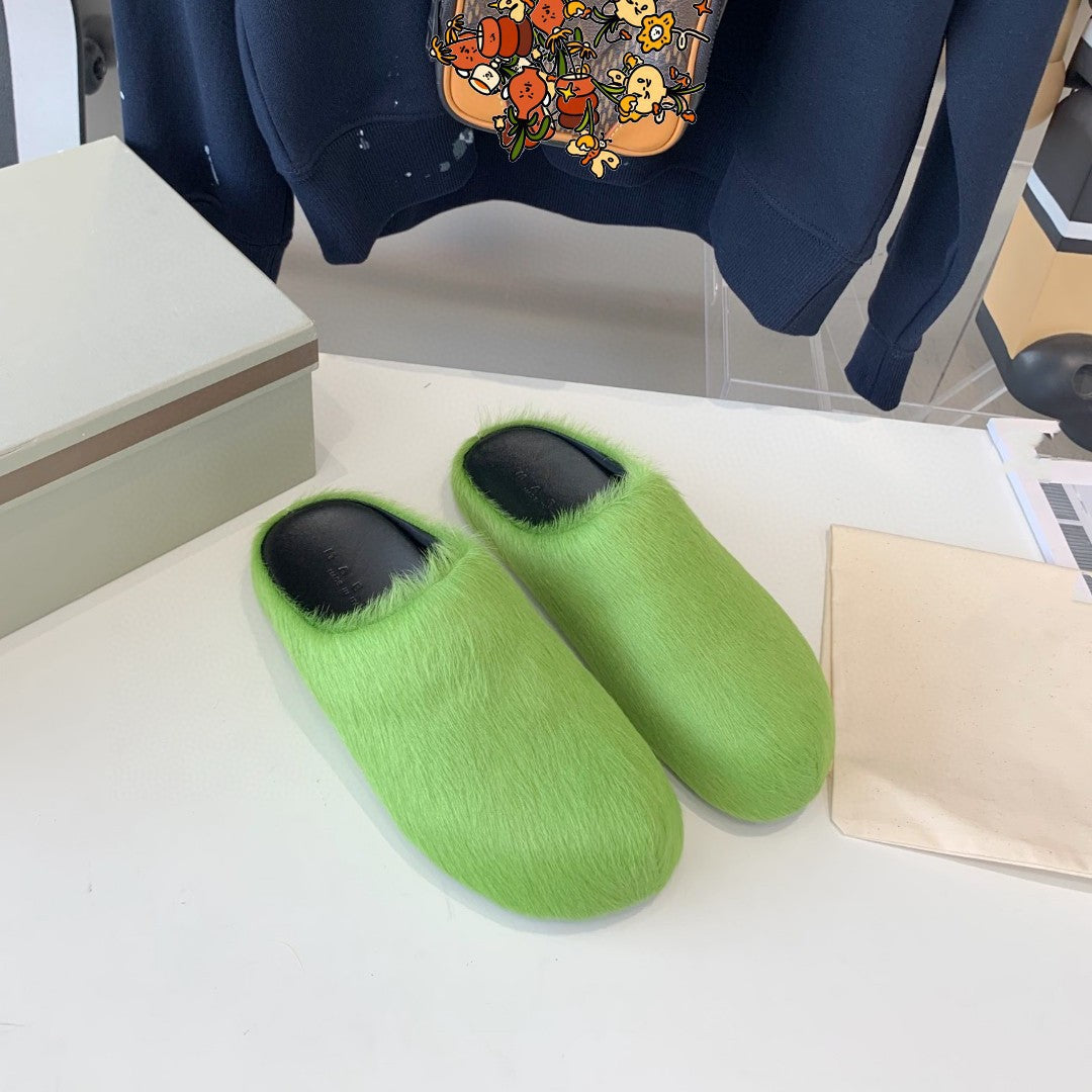 2024 New Couple Candy Color Internet Celebrity Same Style Fashion Closed-Toe Fur Slippers Women Flat Casual Horse Hair Half Slippers Men Shoes