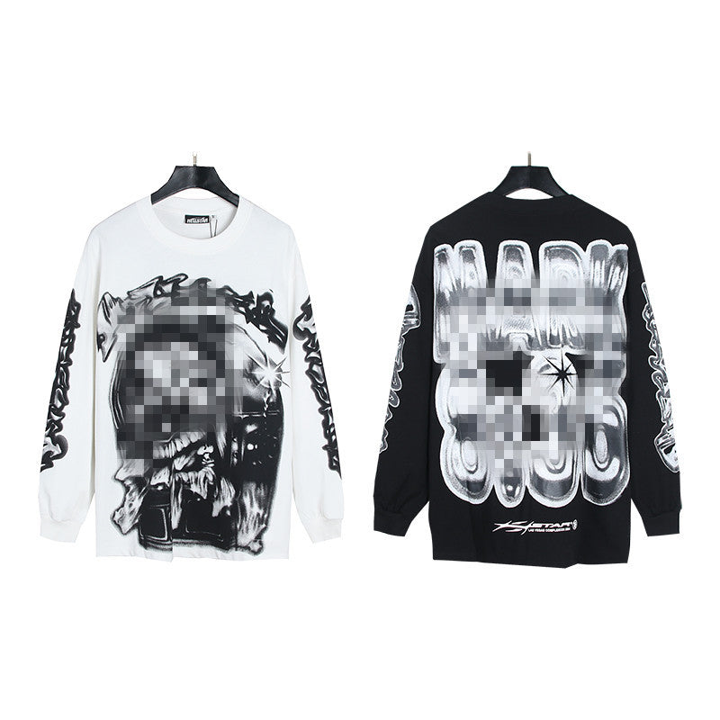 2025 Summer New American Fashion Brand Male and Female Couples Wear plus Size Loose Pullover Long Sleeve T-shirt Teenagers