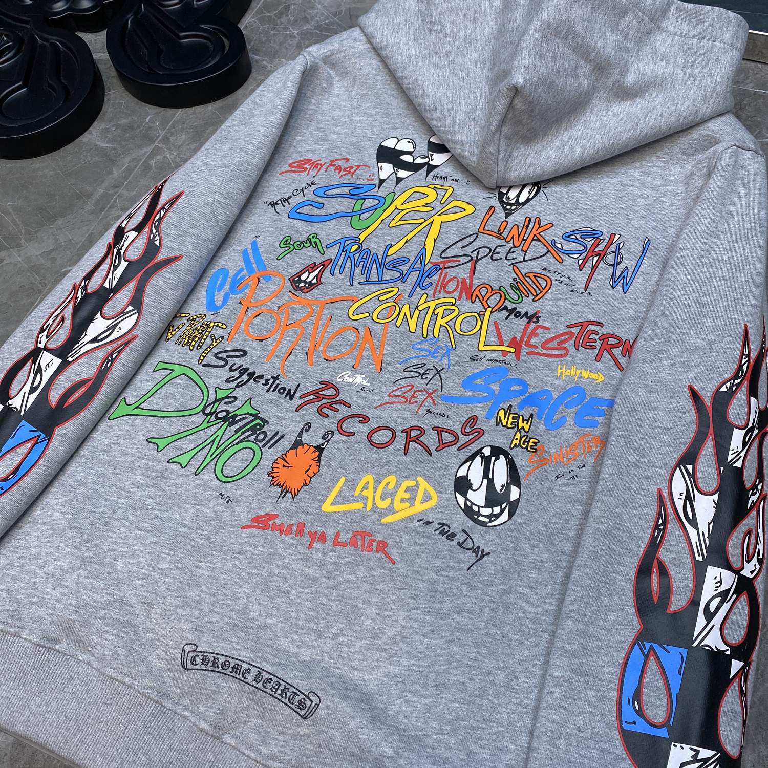 21SS Correct Version Crow Matty Graffiti Flame Cross Flower Arm Hooded Sweatshirt Couple Style