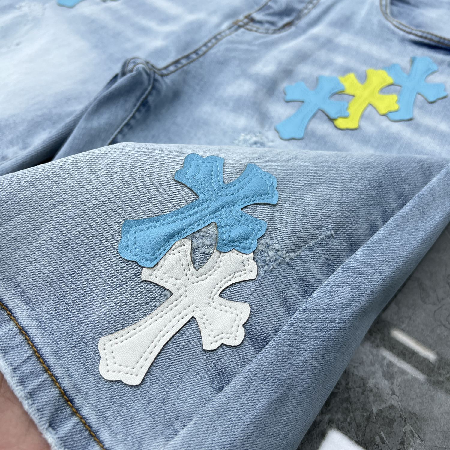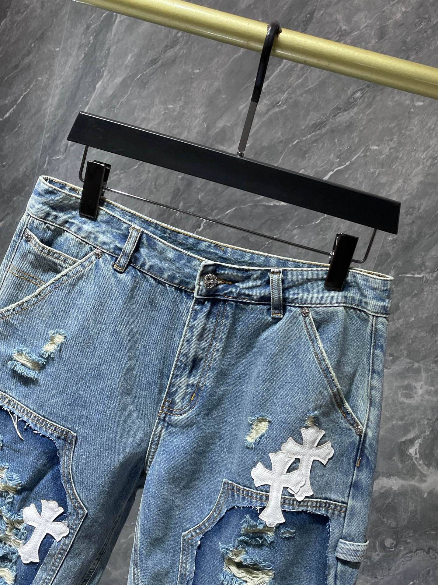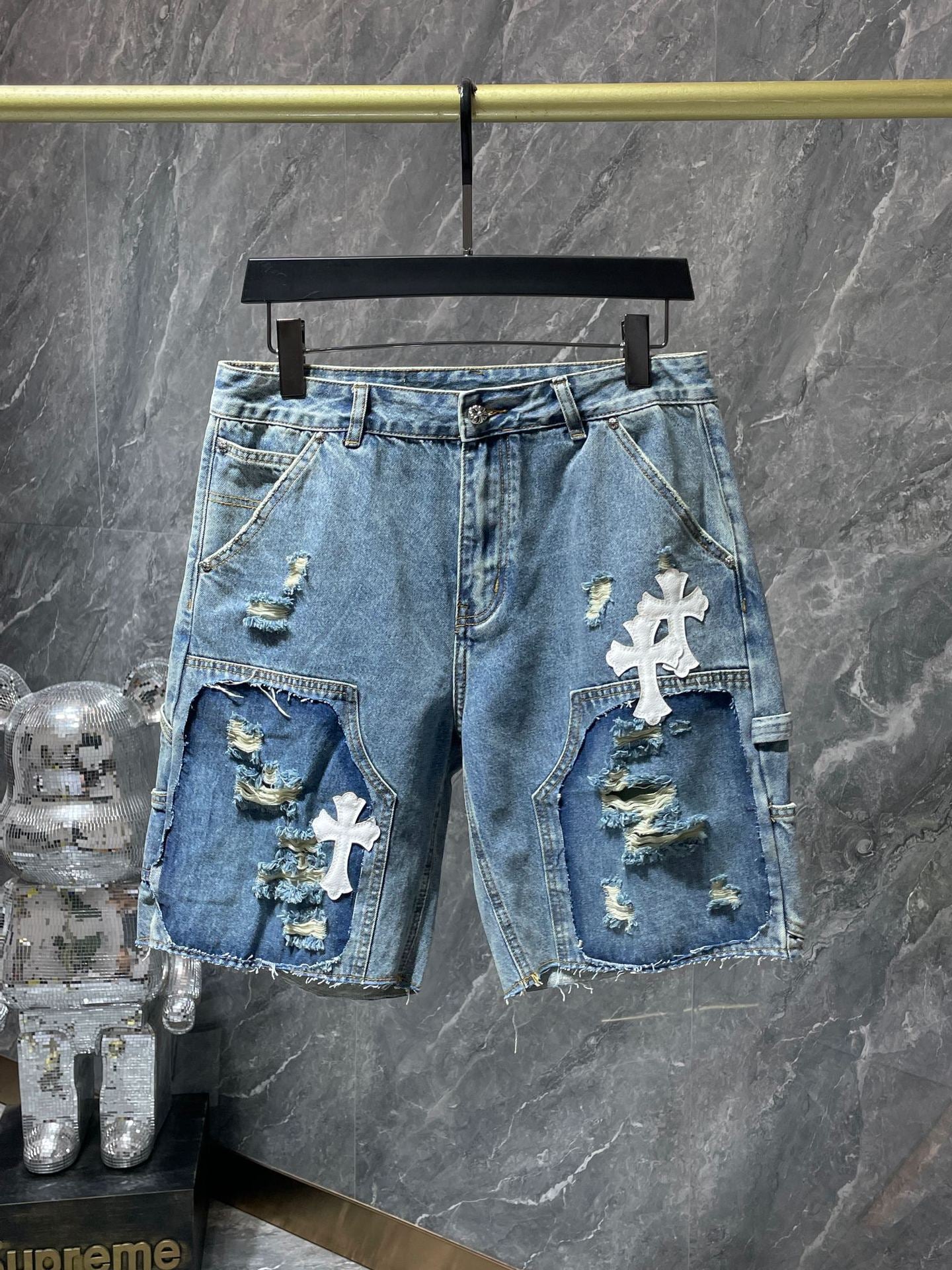 24ss Ch Heavy Industry Cross Patch Denim Shorts Couple Shorts