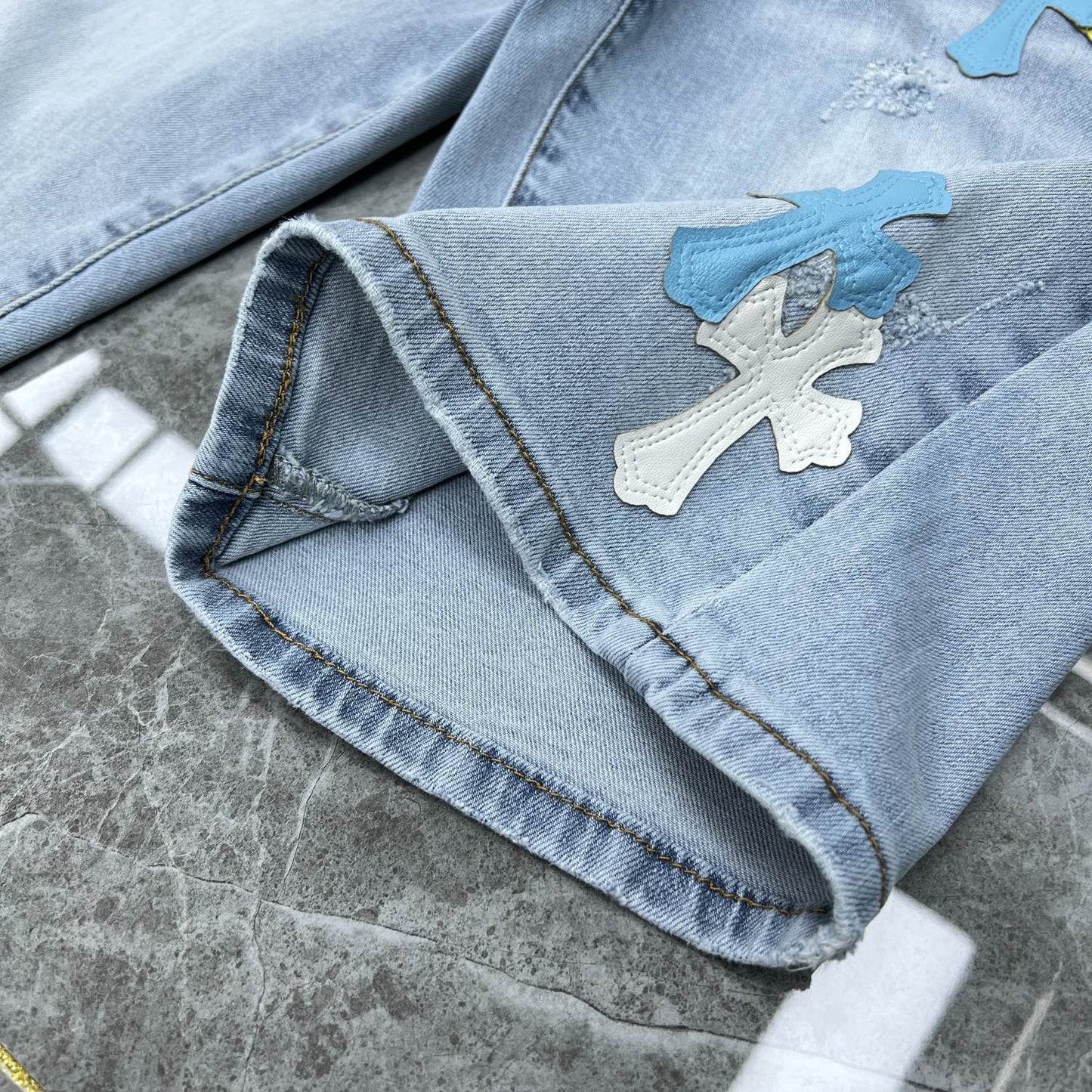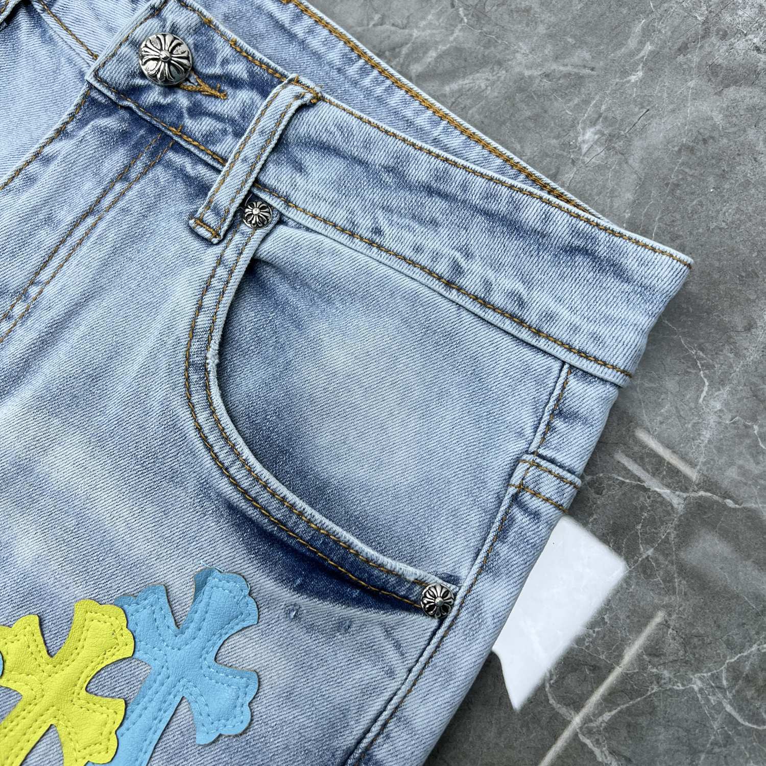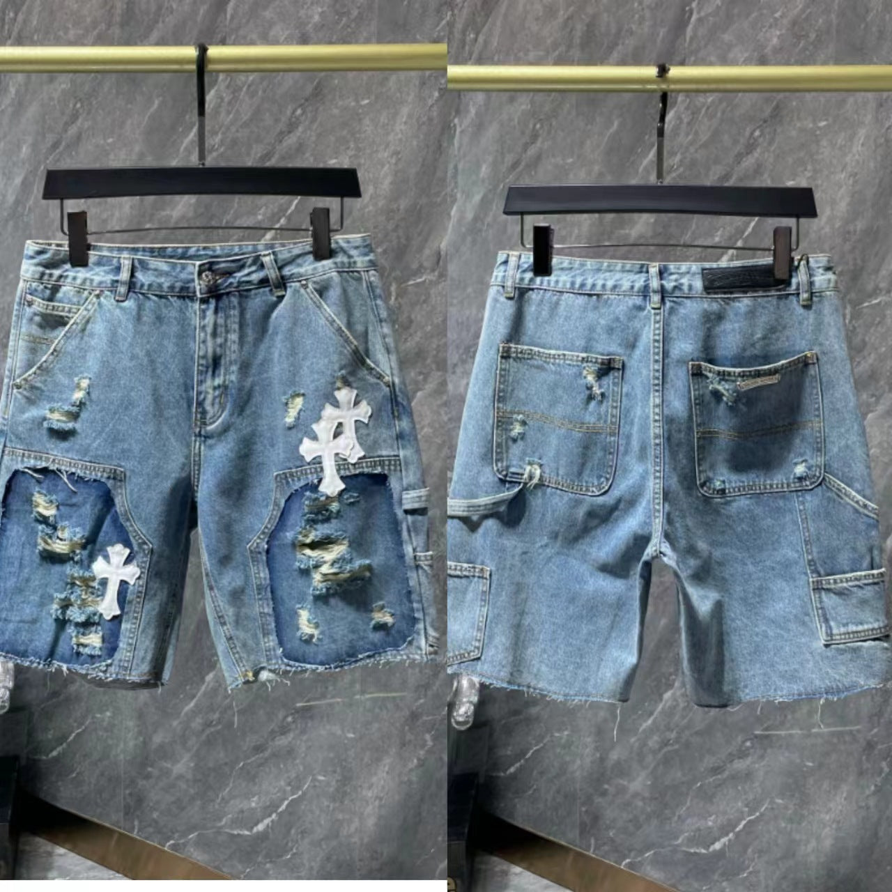 24ss Ch Heavy Industry Cross Patch Denim Shorts Couple Shorts