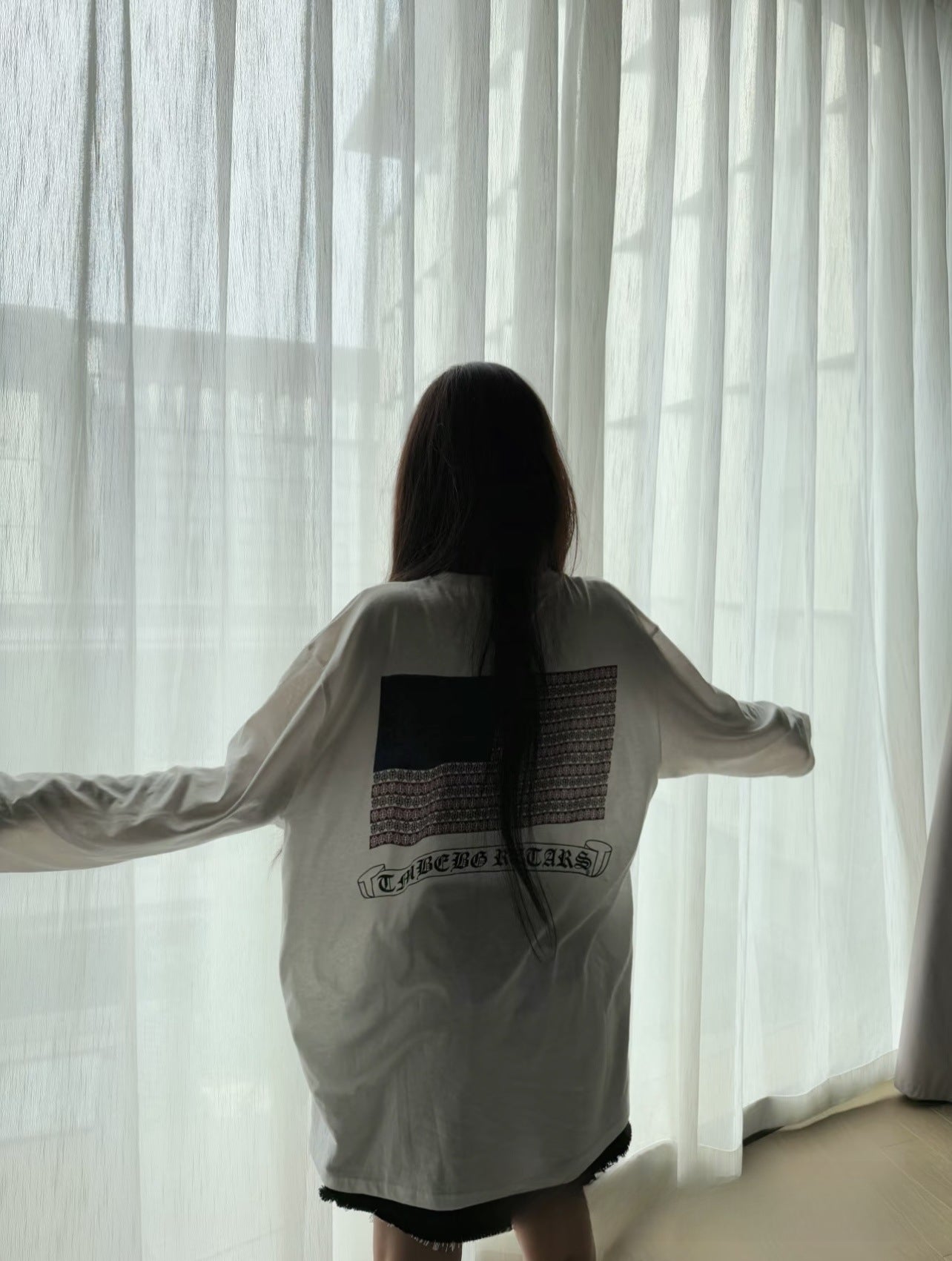 25ss New Ch Crow Snowflake Cotton Long Sleeve Summer Thin Loose Lazy Back Print T-Shirt Women Round Neck