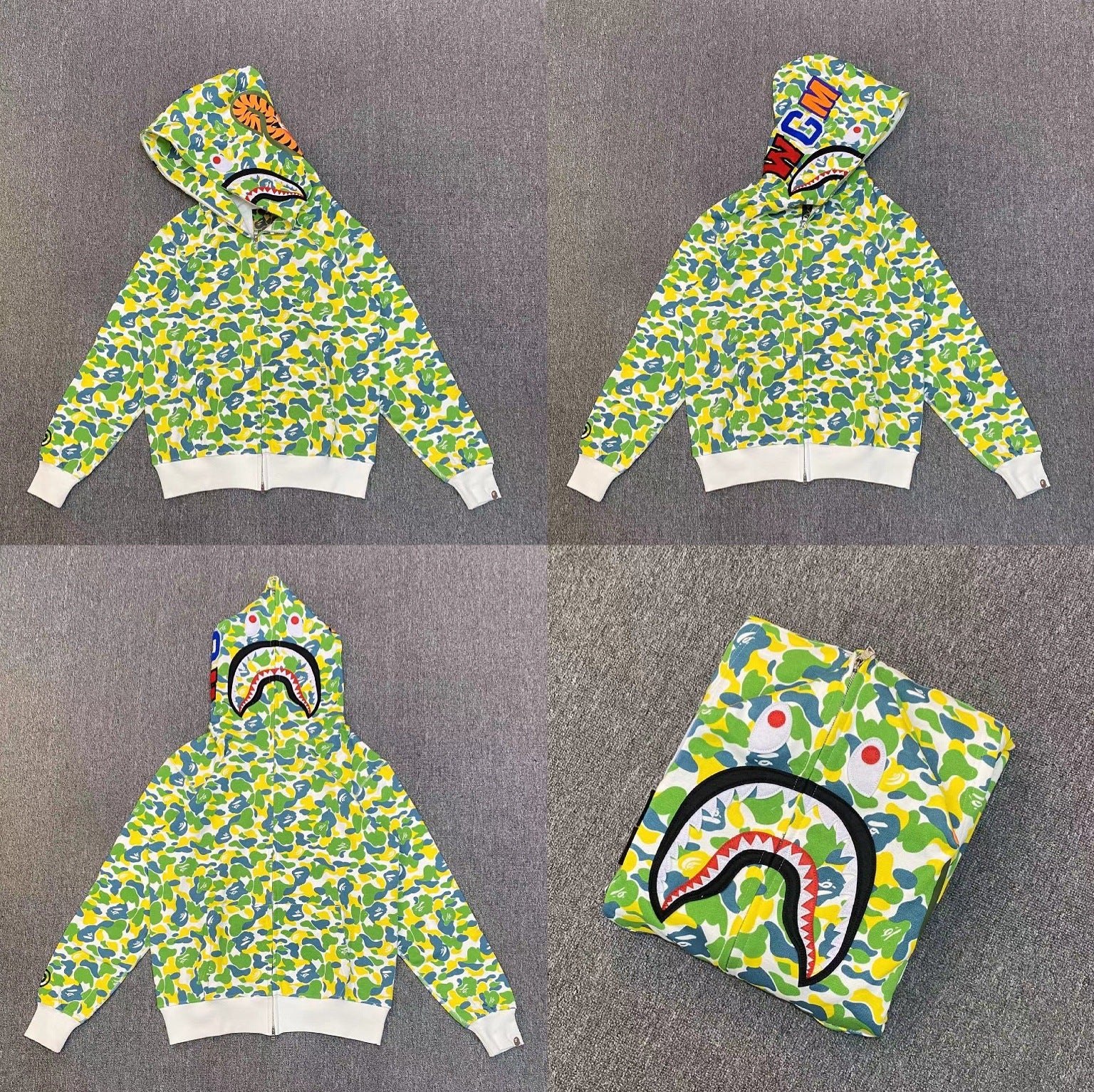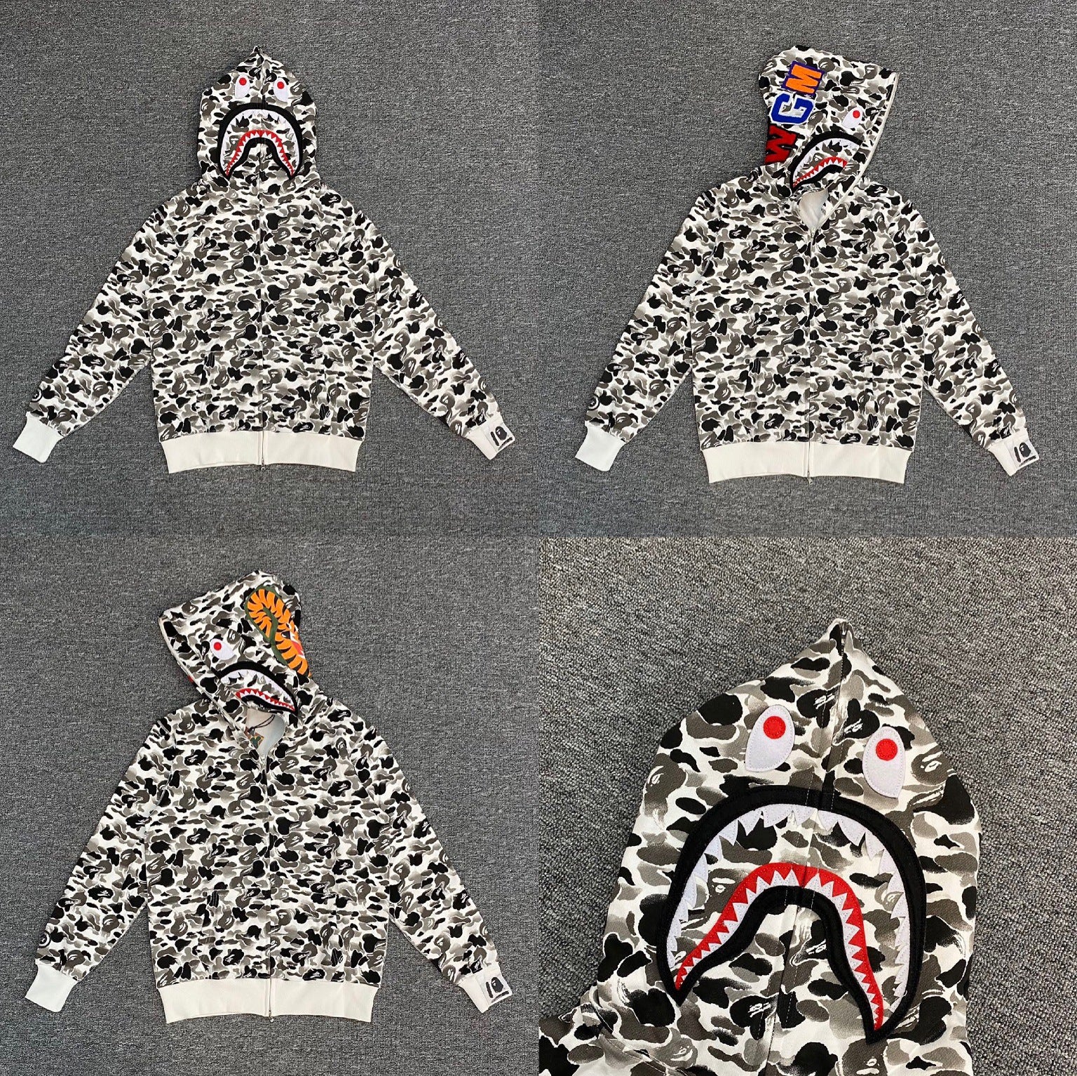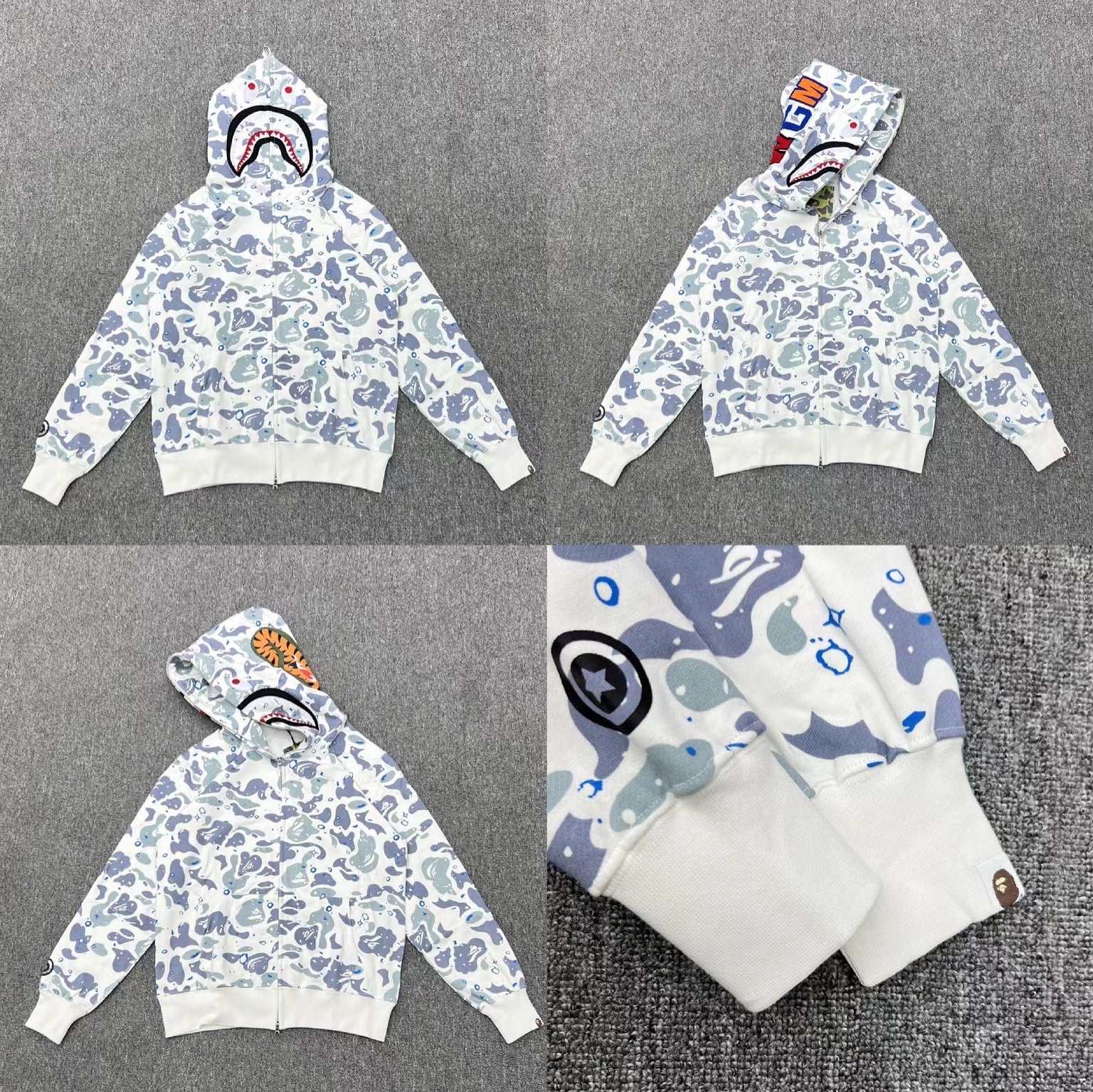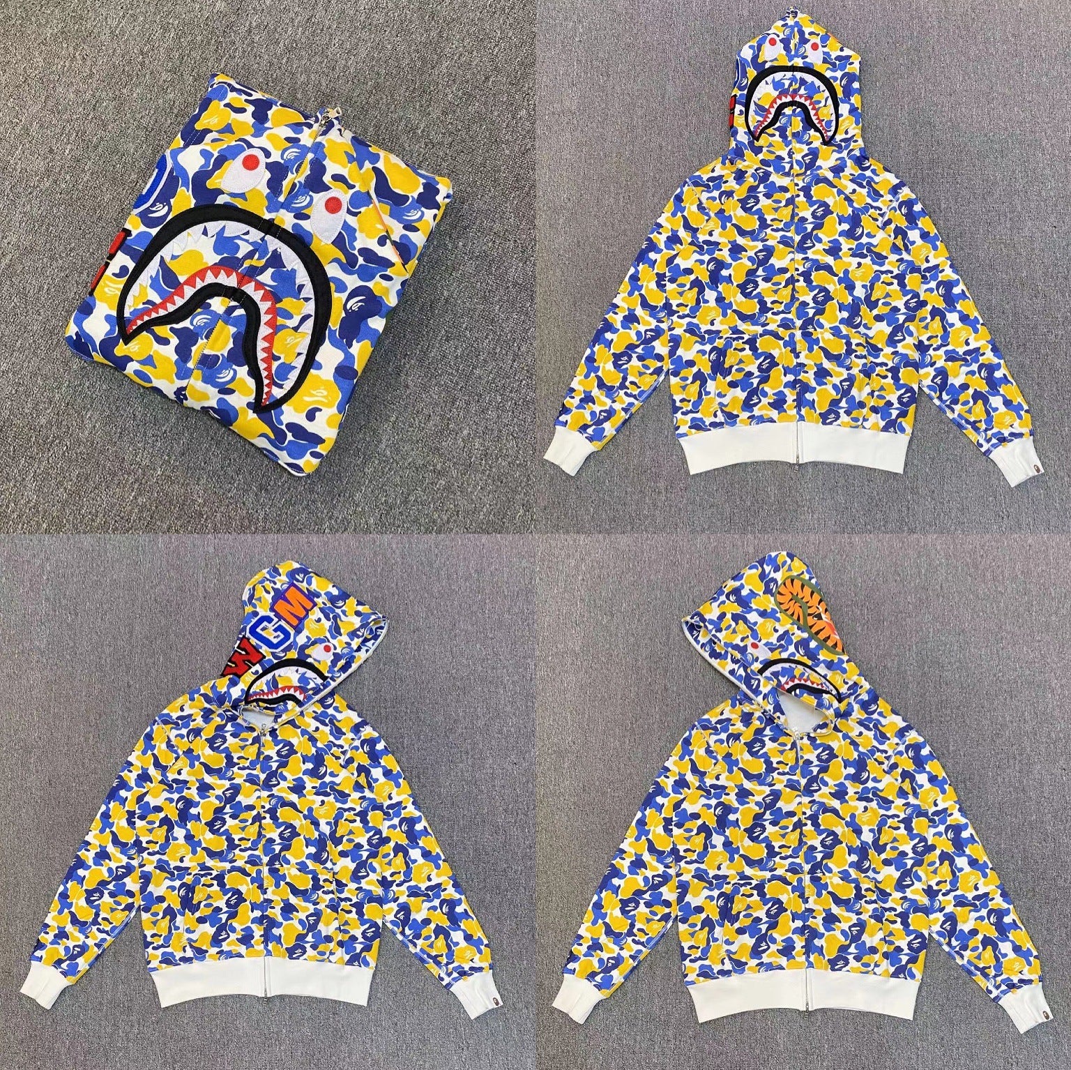 Fashion Brand Shark Camouflage Zipper Sweater Men and Women Couple Loose Cotton Fleece-lined Hooded Cardigan Coat Men