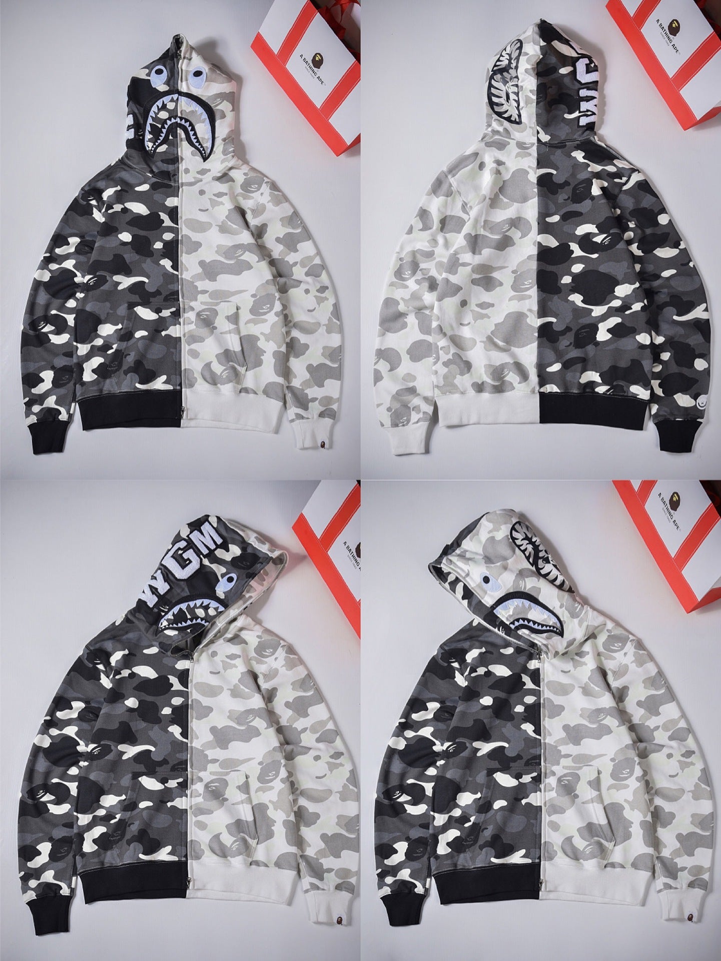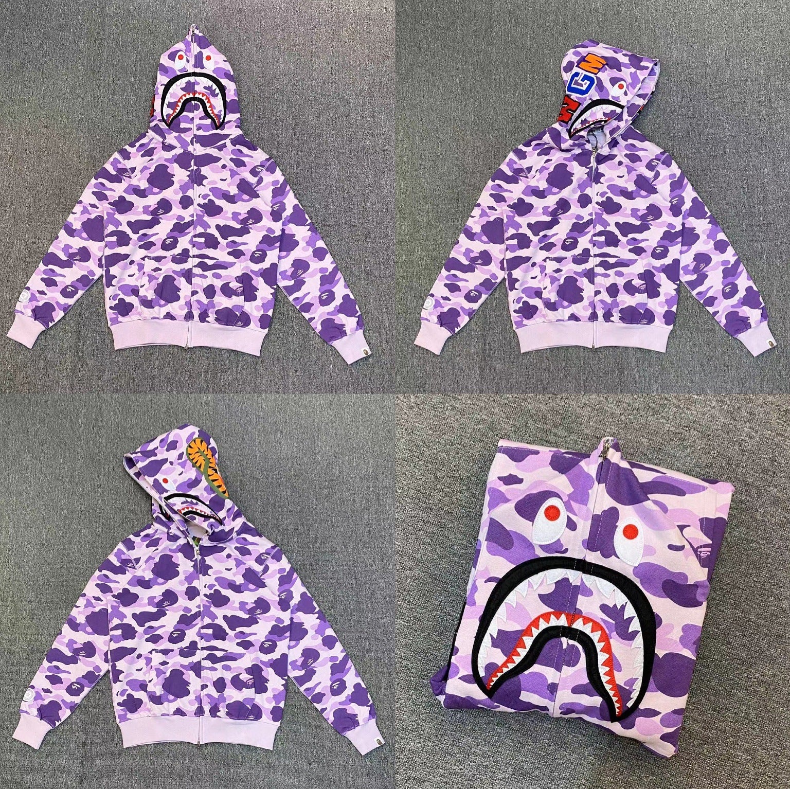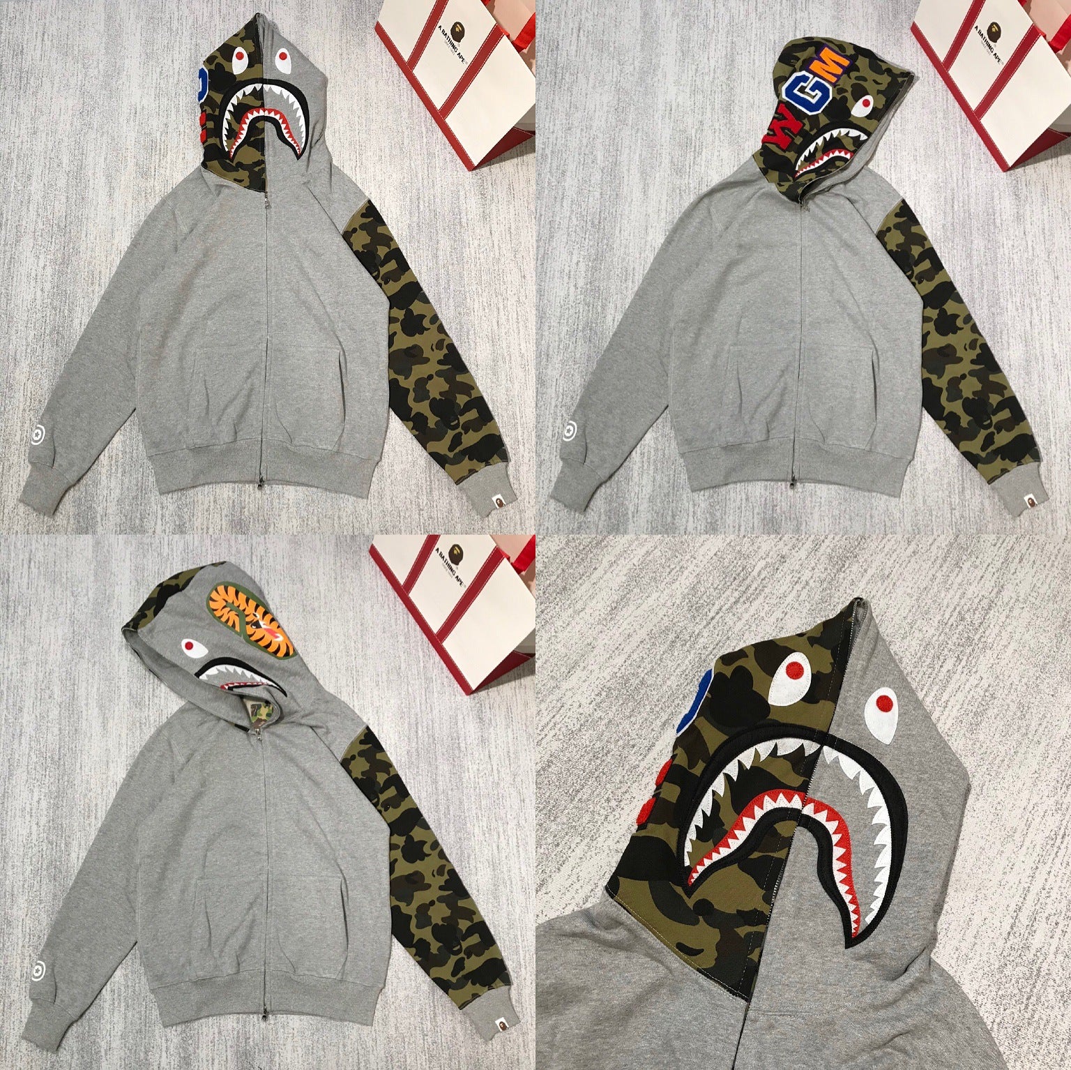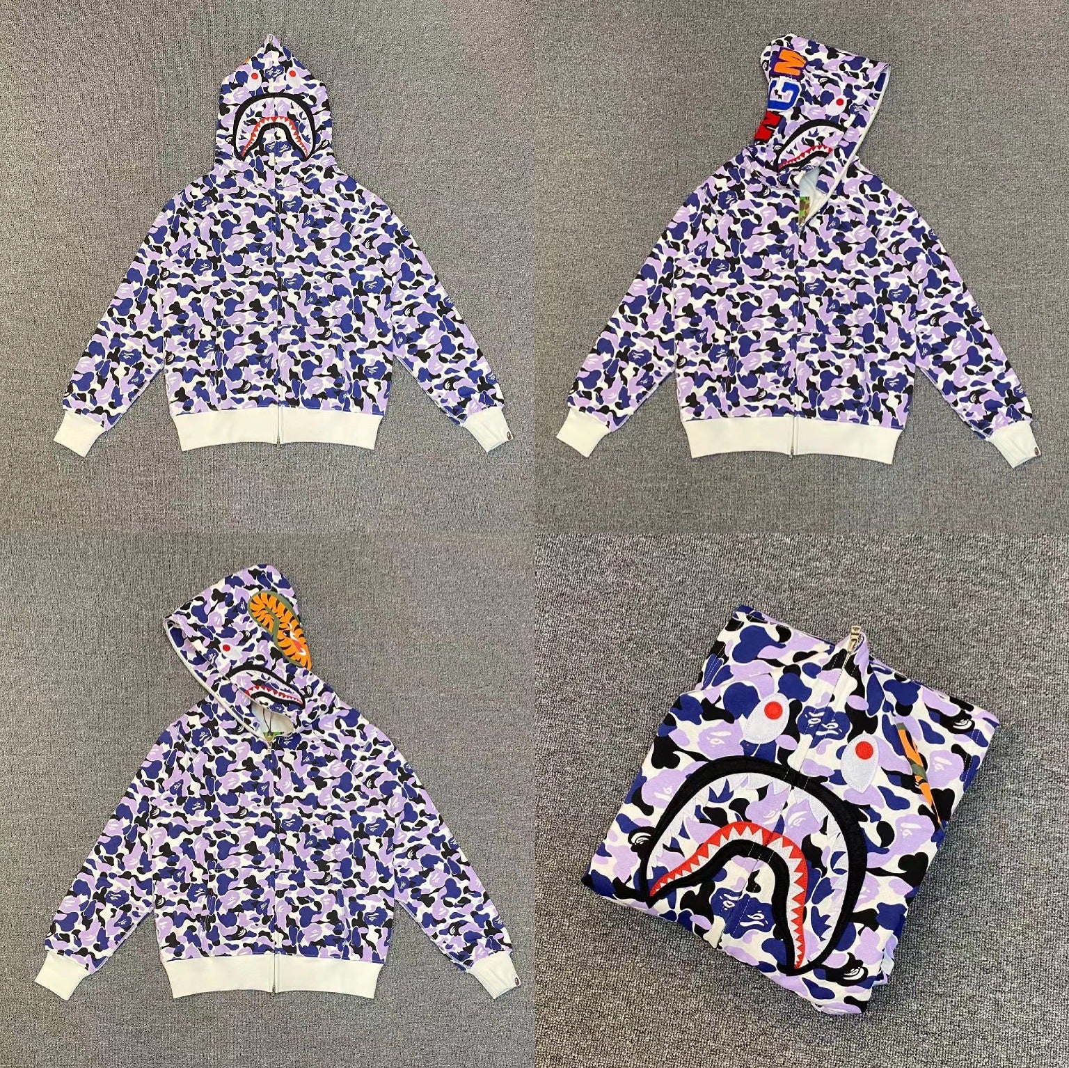Fashion Brand Shark Camouflage Zipper Sweater Men and Women Couple Loose Cotton Fleece-lined Hooded Cardigan Coat Men