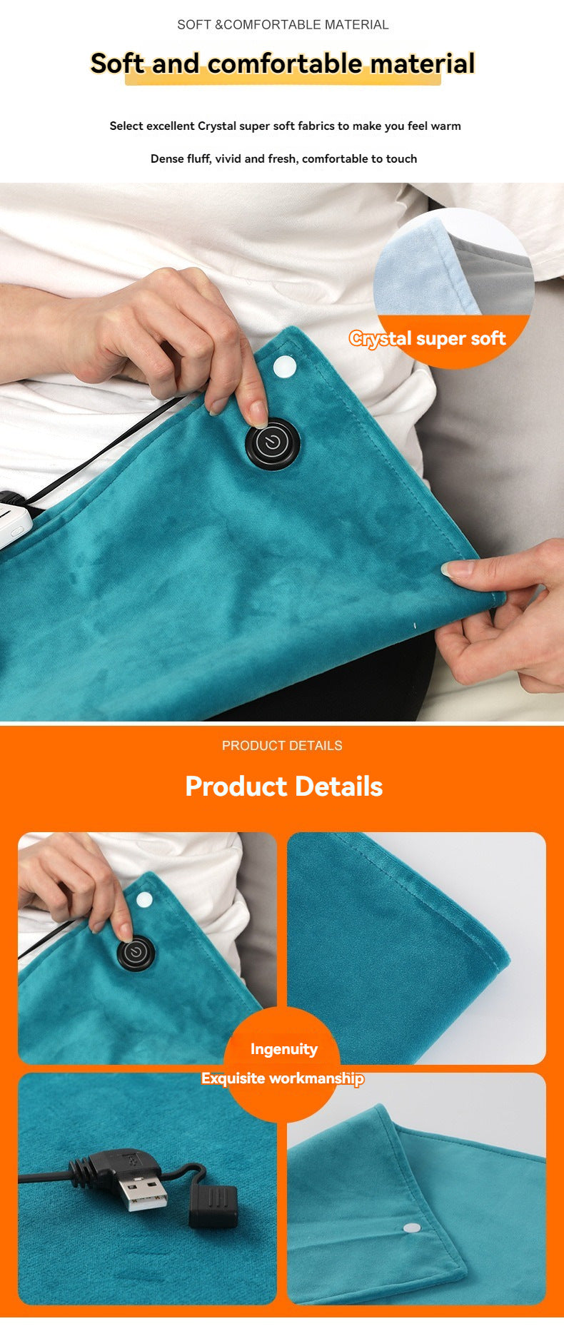 Graphene USB Hand Warmer Hand Warmer Solid Color Plush Multi-Purpose Thickened Portable Multi-Purpose Electric Heating Heating Mat