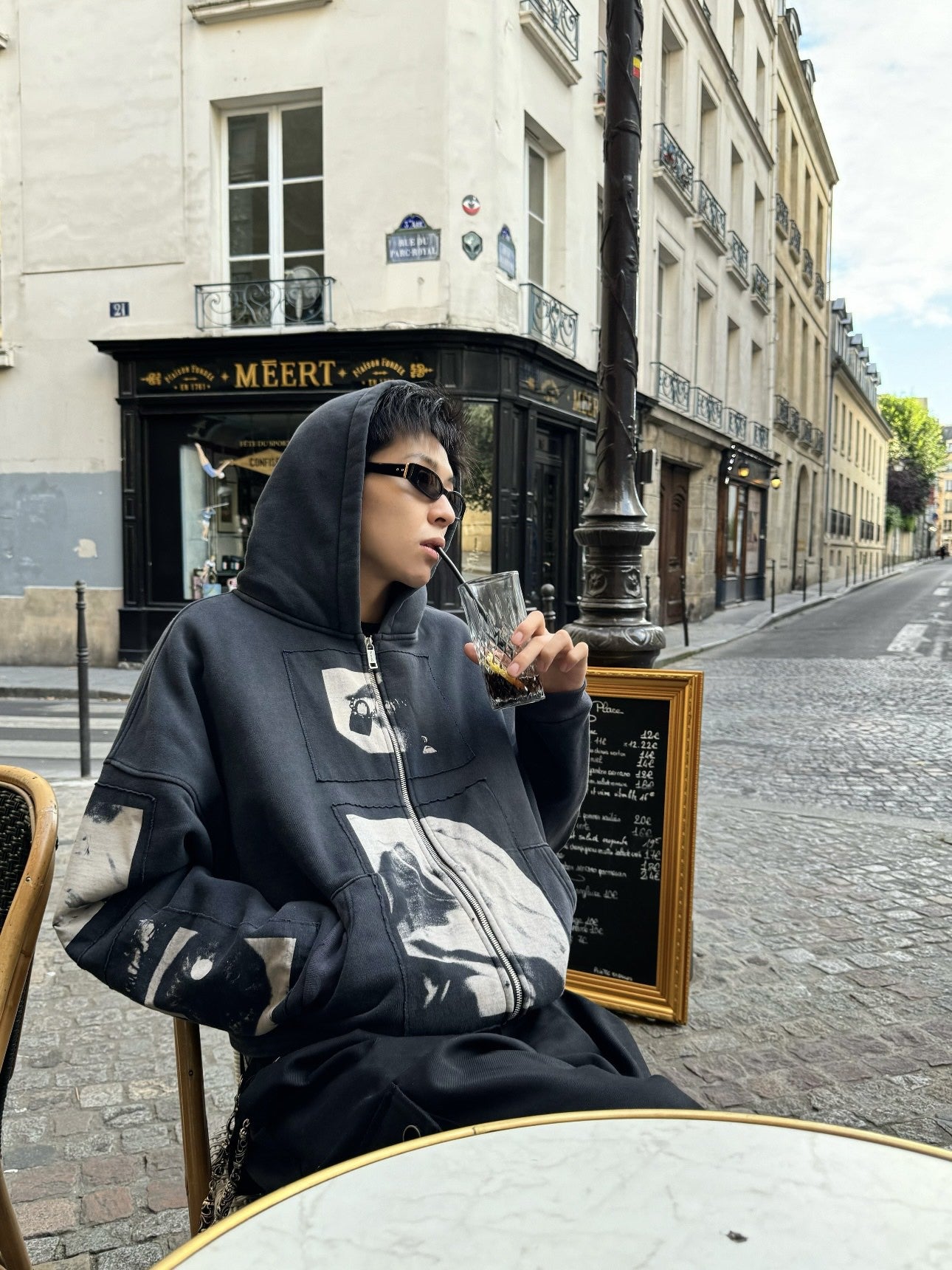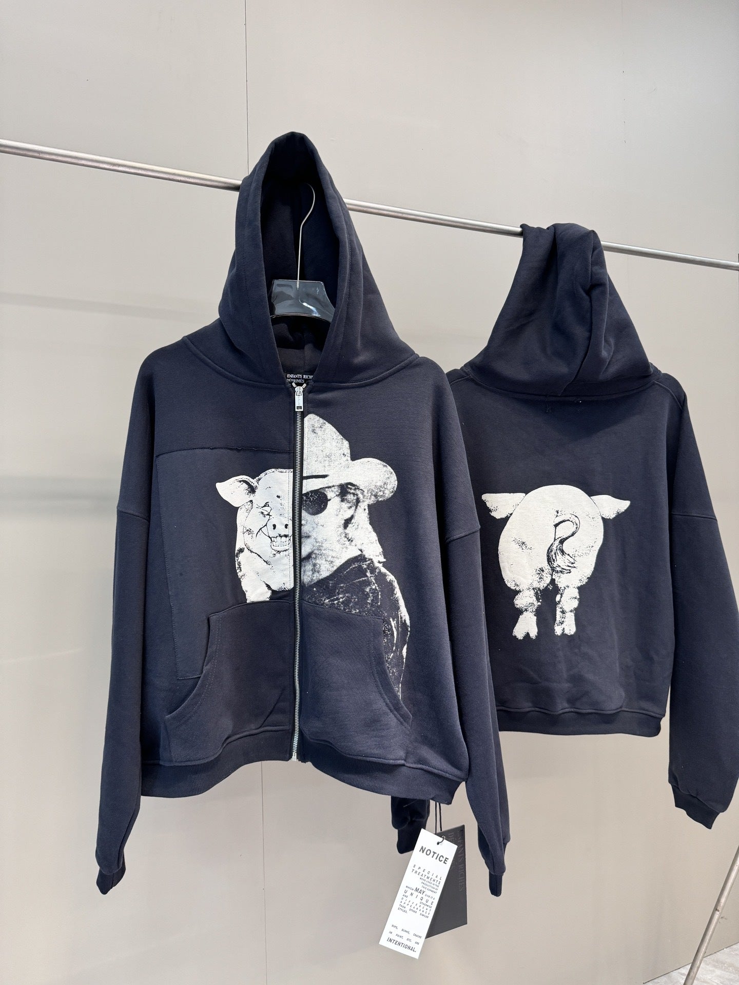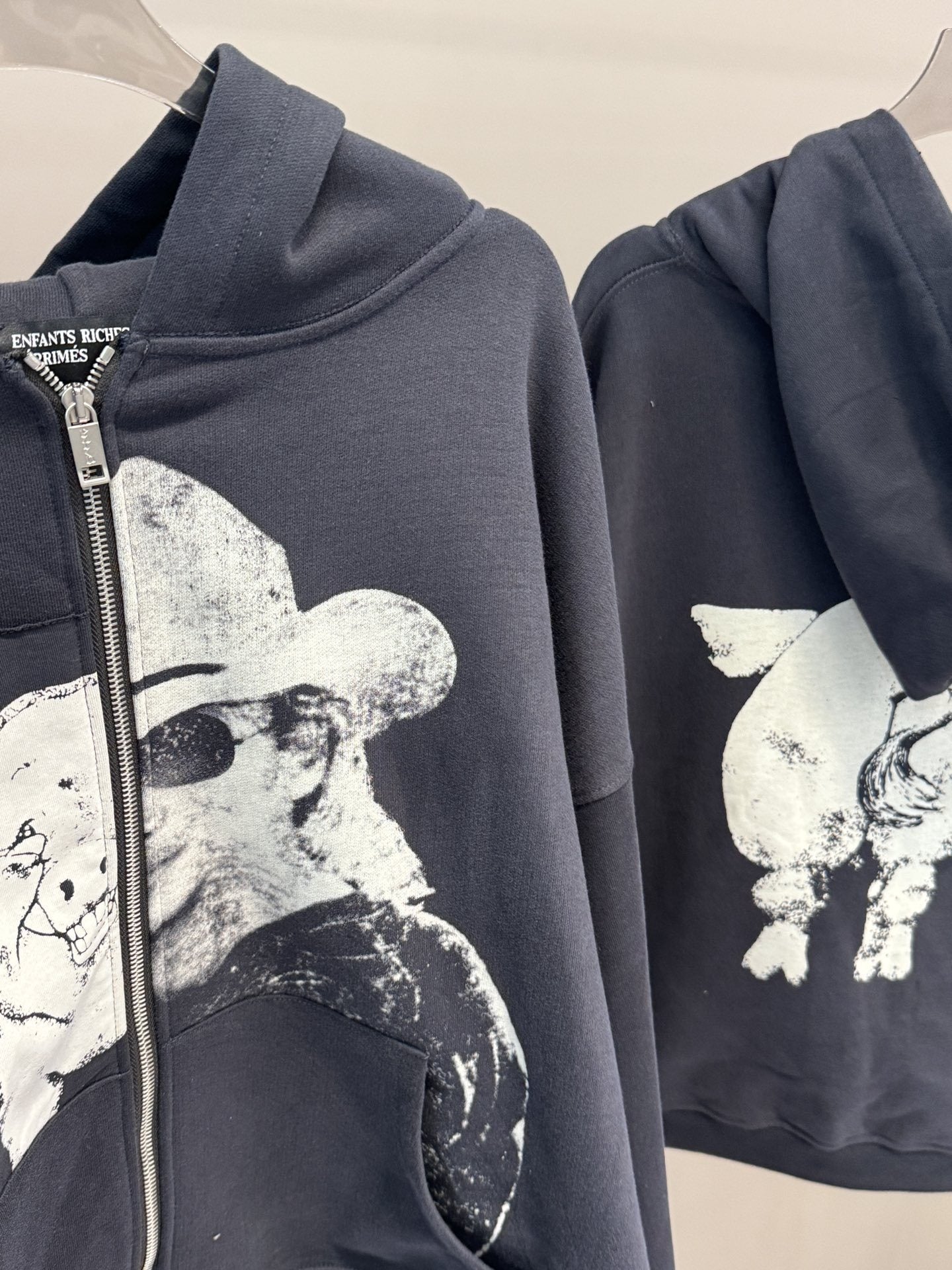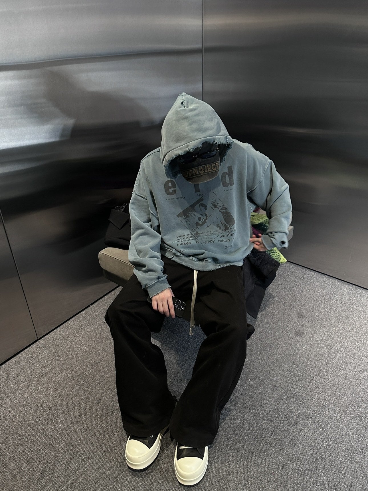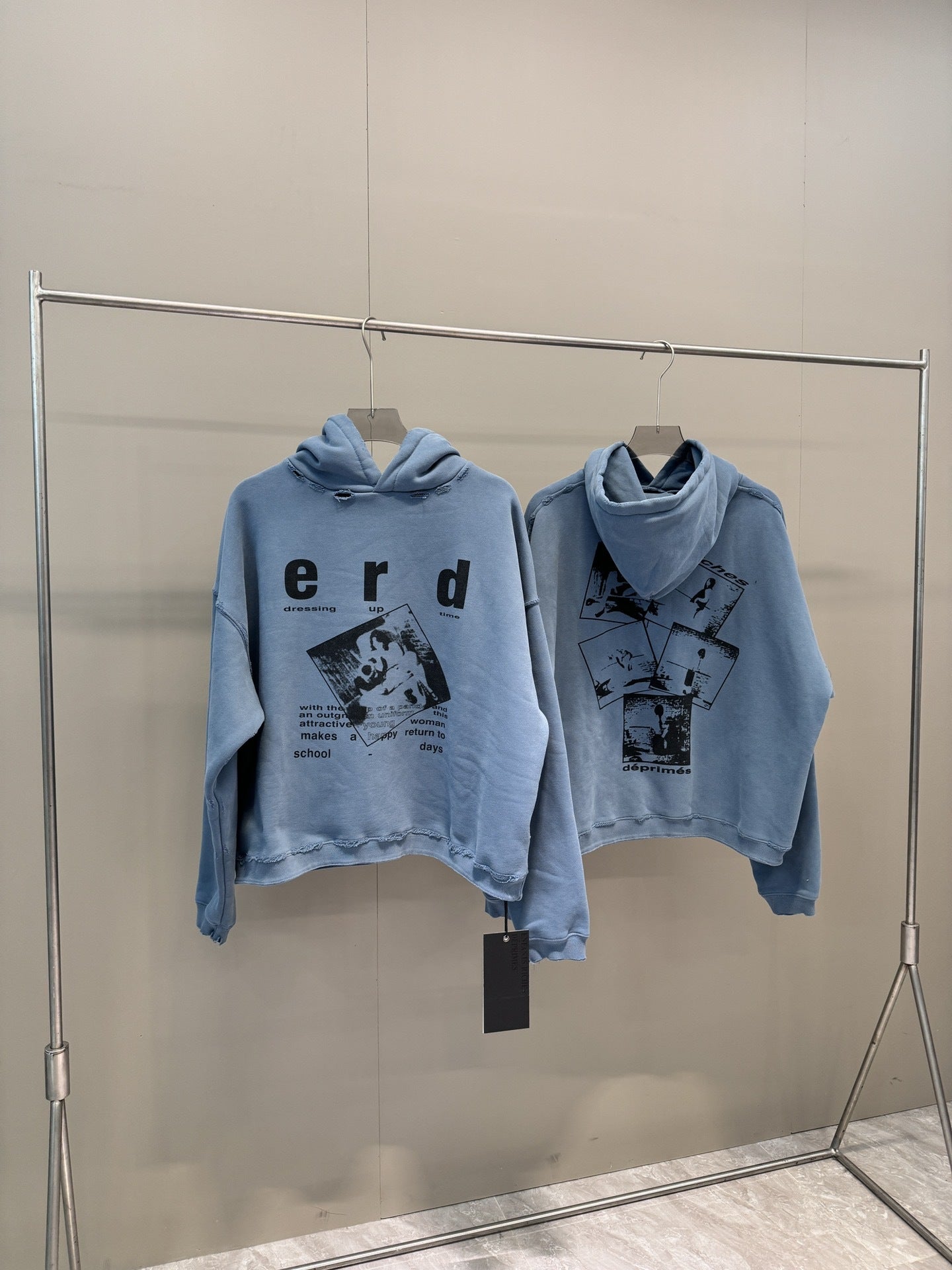 High-Quality ERD Melancholy Rich Second Generation Hooded Sweatshirt Washed Vintage Distressed Jacket Autumn Winter Zipper Coat