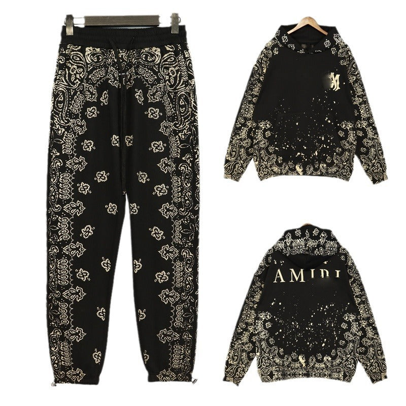 Hooded Sweatshirt Cashew Hoodie Floral Loose Pants Unisex Retro Sports Set Casual Pants Trend