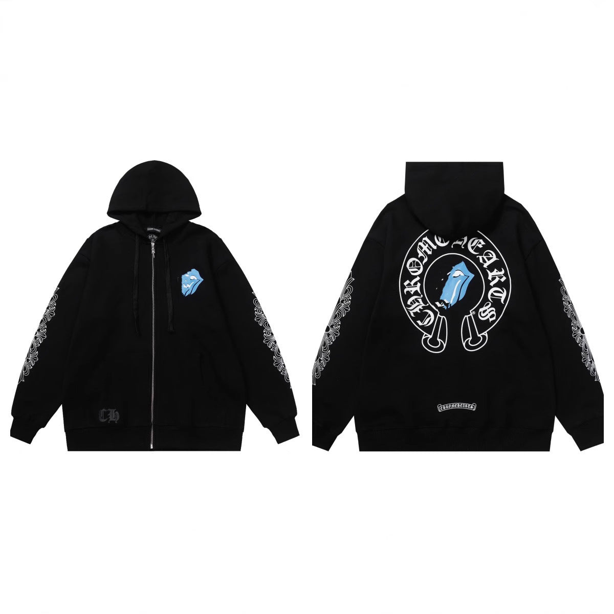 CH Autumn Winter New Cross Scroll Simple Classic Hooded Sweatshirt Zipper Pure Cotton Jacket