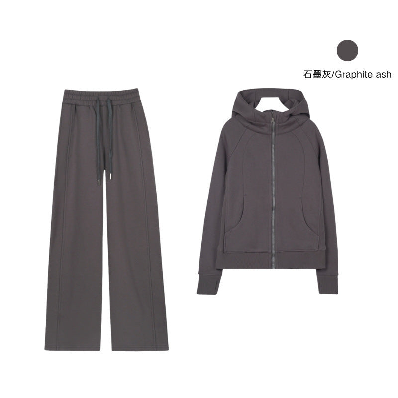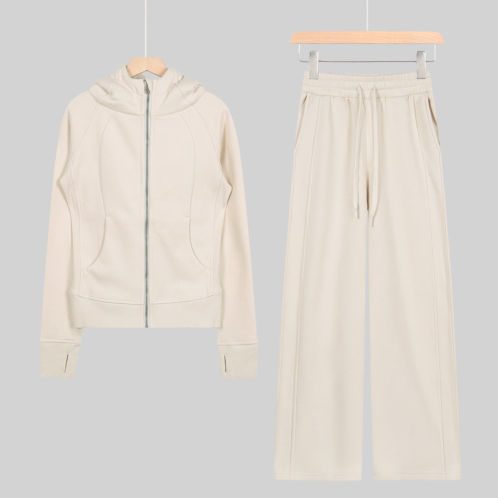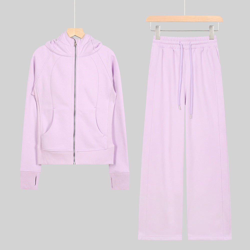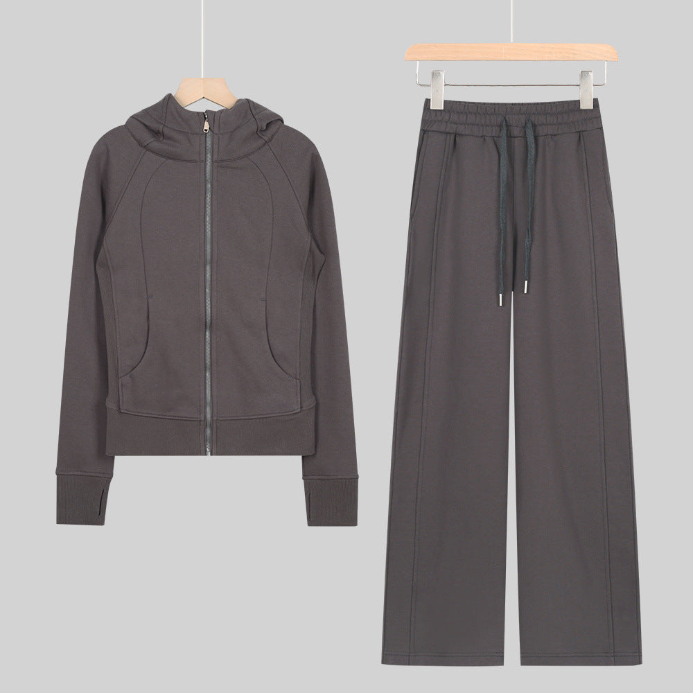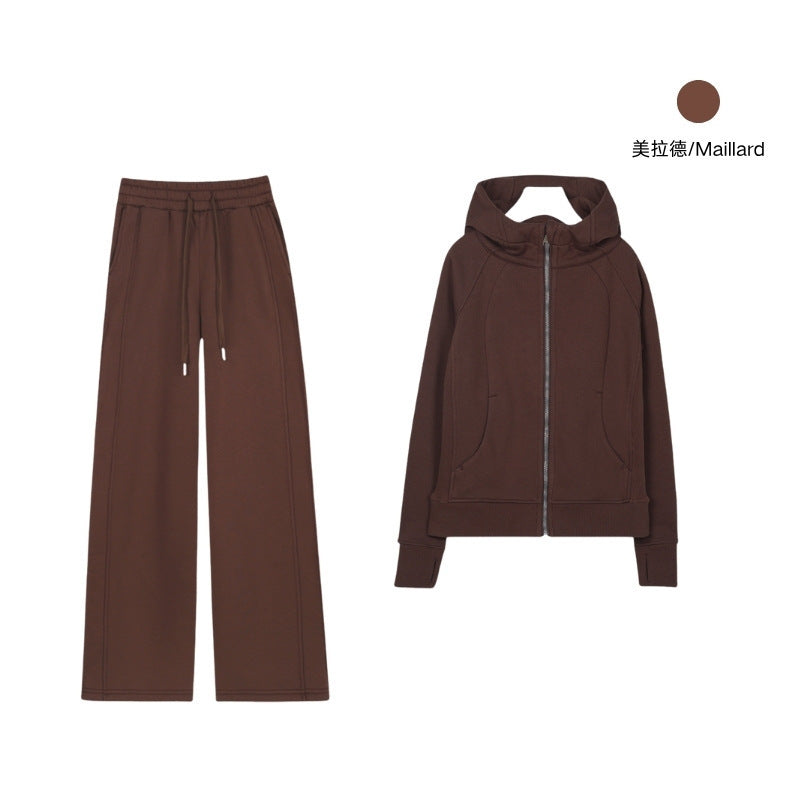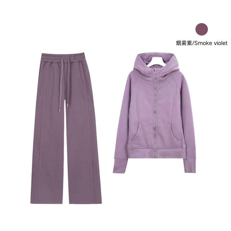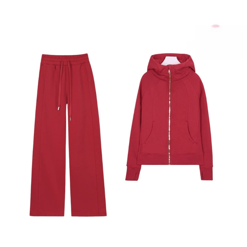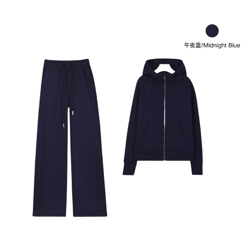 LULU Embroidered Hooded Zipper Cardigan Slim Fit Sweatshirt Set Fleece Lined Full Zipper Cardigan Jacket Gold Label