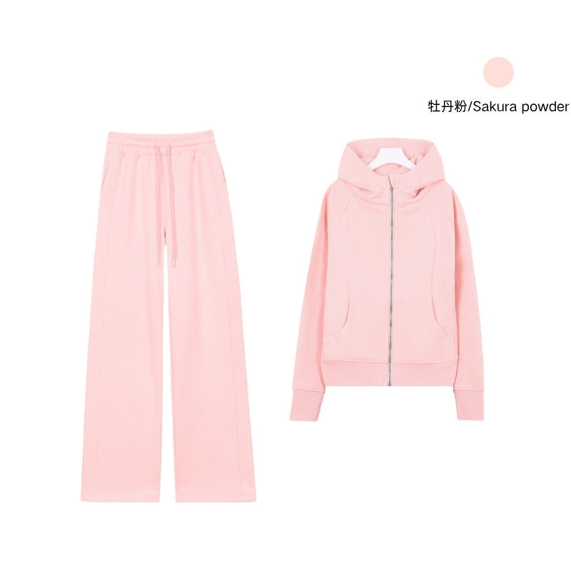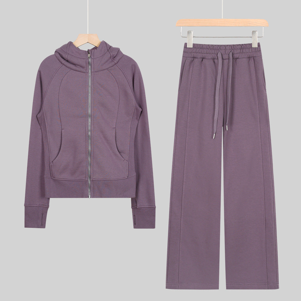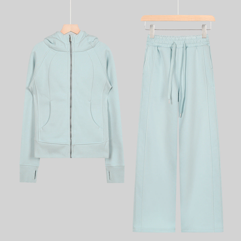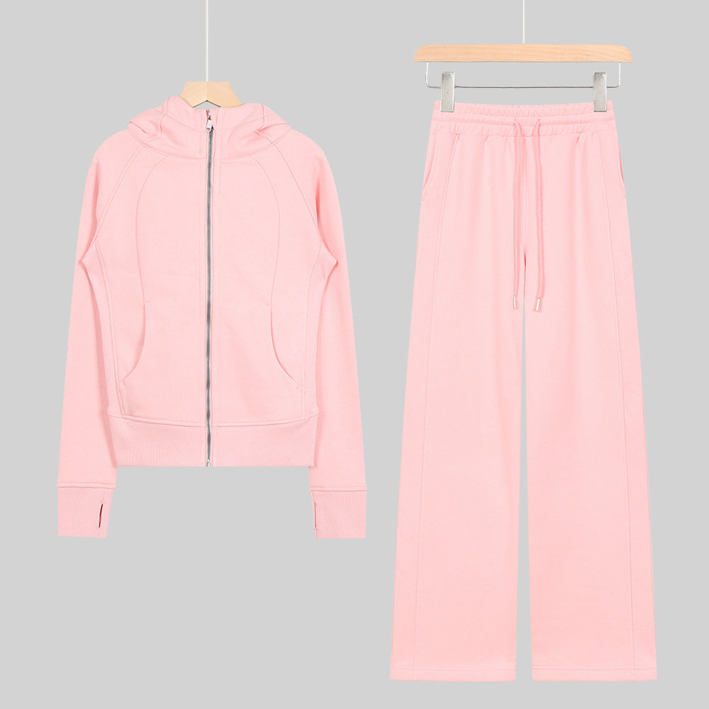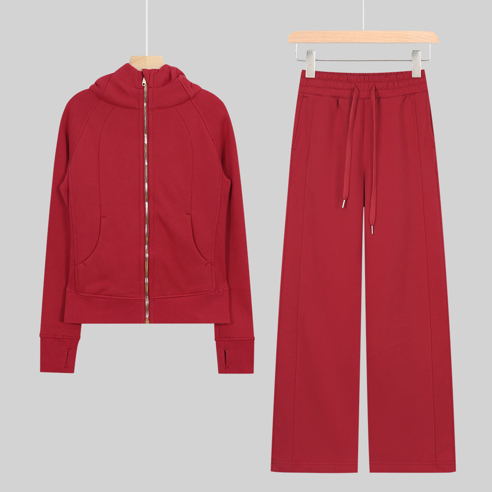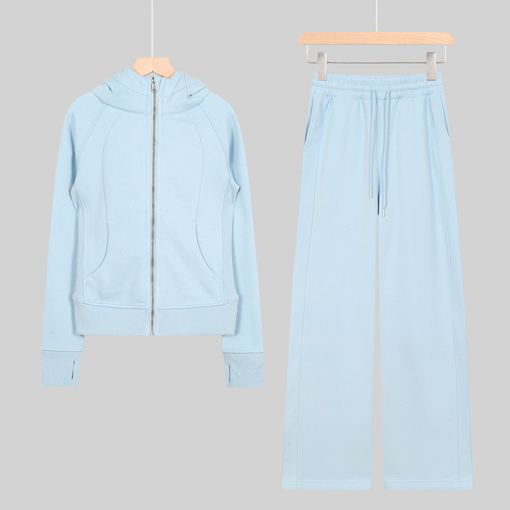 LULU Embroidered Hooded Zipper Cardigan Slim Fit Sweatshirt Set Fleece Lined Full Zipper Cardigan Jacket Gold Label
