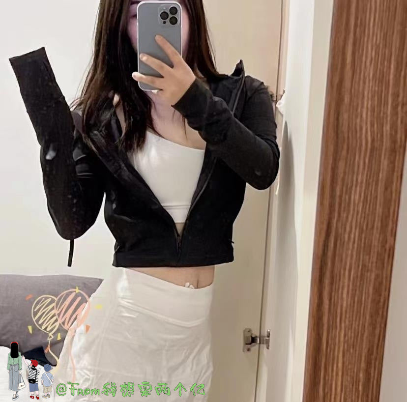 Lulu Same Style Short Mesh Hooded Jacket Yoga Clothes Mesh Define Sports Thin Casual Jacket Women