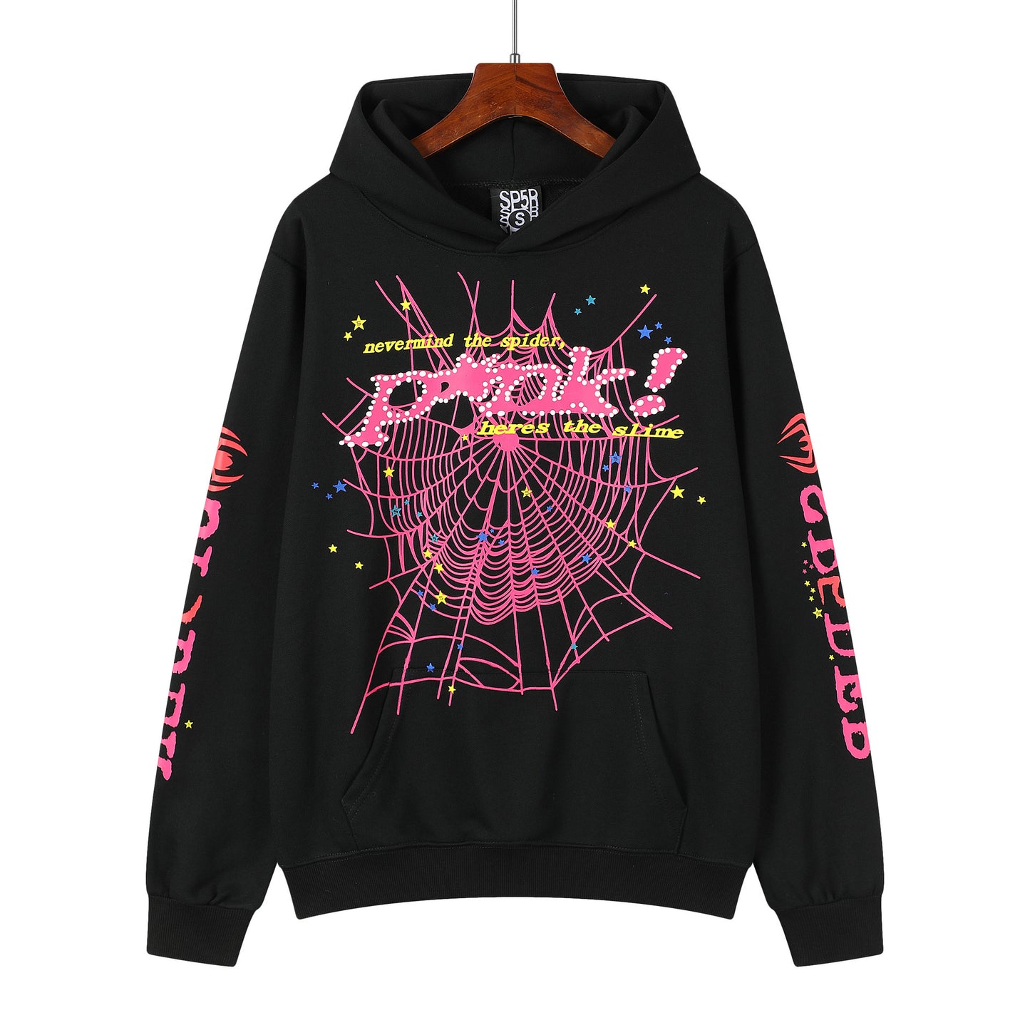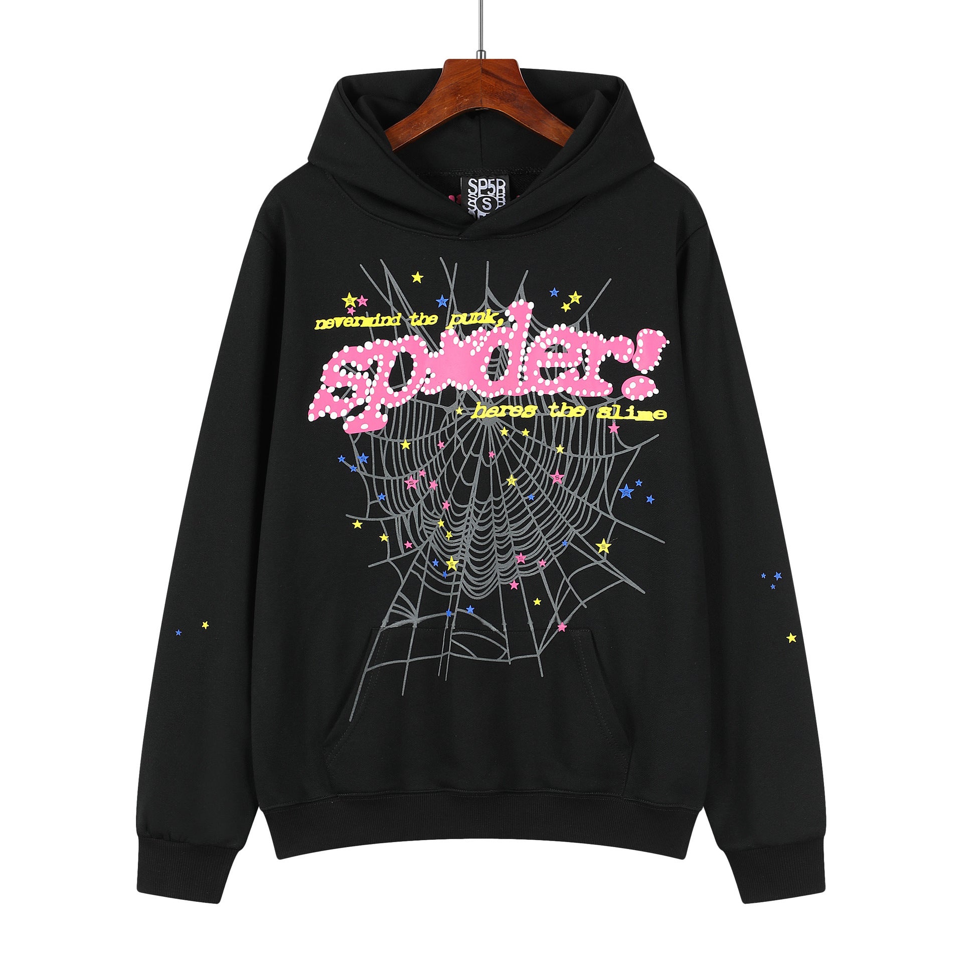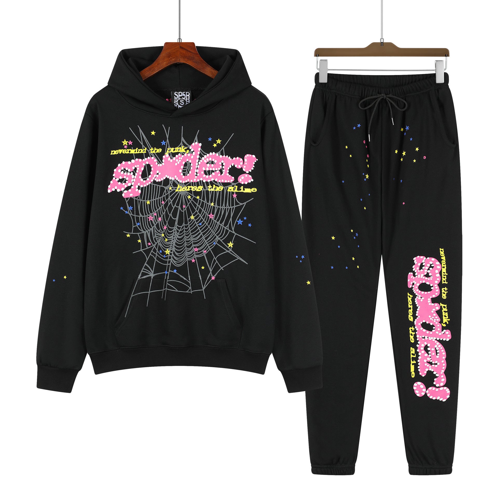 Beautiful Fashion Brand Men's and Women's Same Style 555555 Cobweb Puff Print Hip Hop Loose Heavy Terry Hooded Sweater Set(NO Fleece Lined)