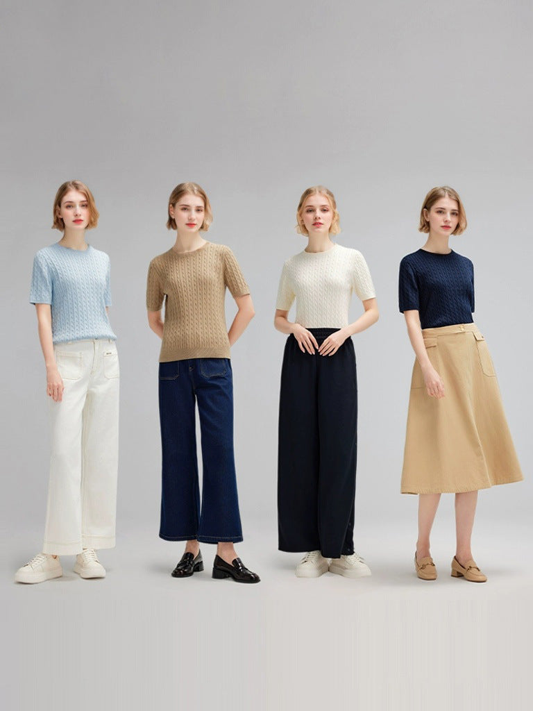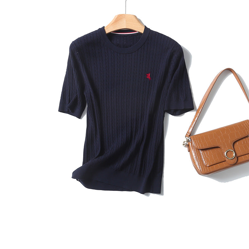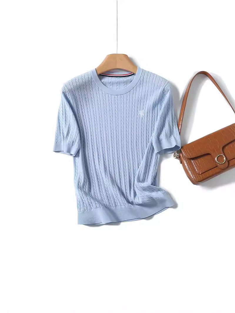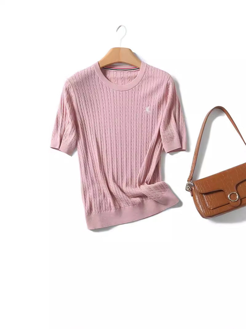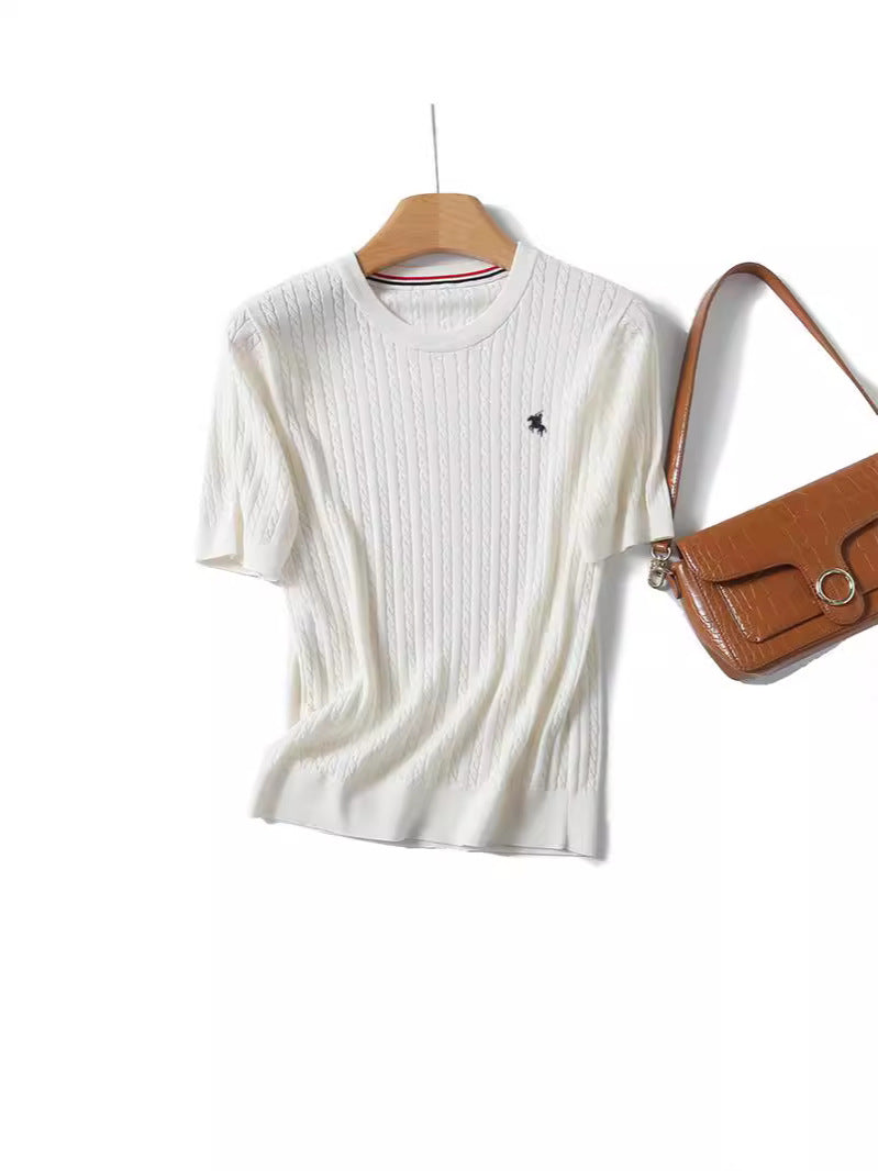 Miu Series Spring and Summer round Neck Embroidered Ruff Pony Fashion Simple Knitwear Female Tn2258 Fashion All-Matching