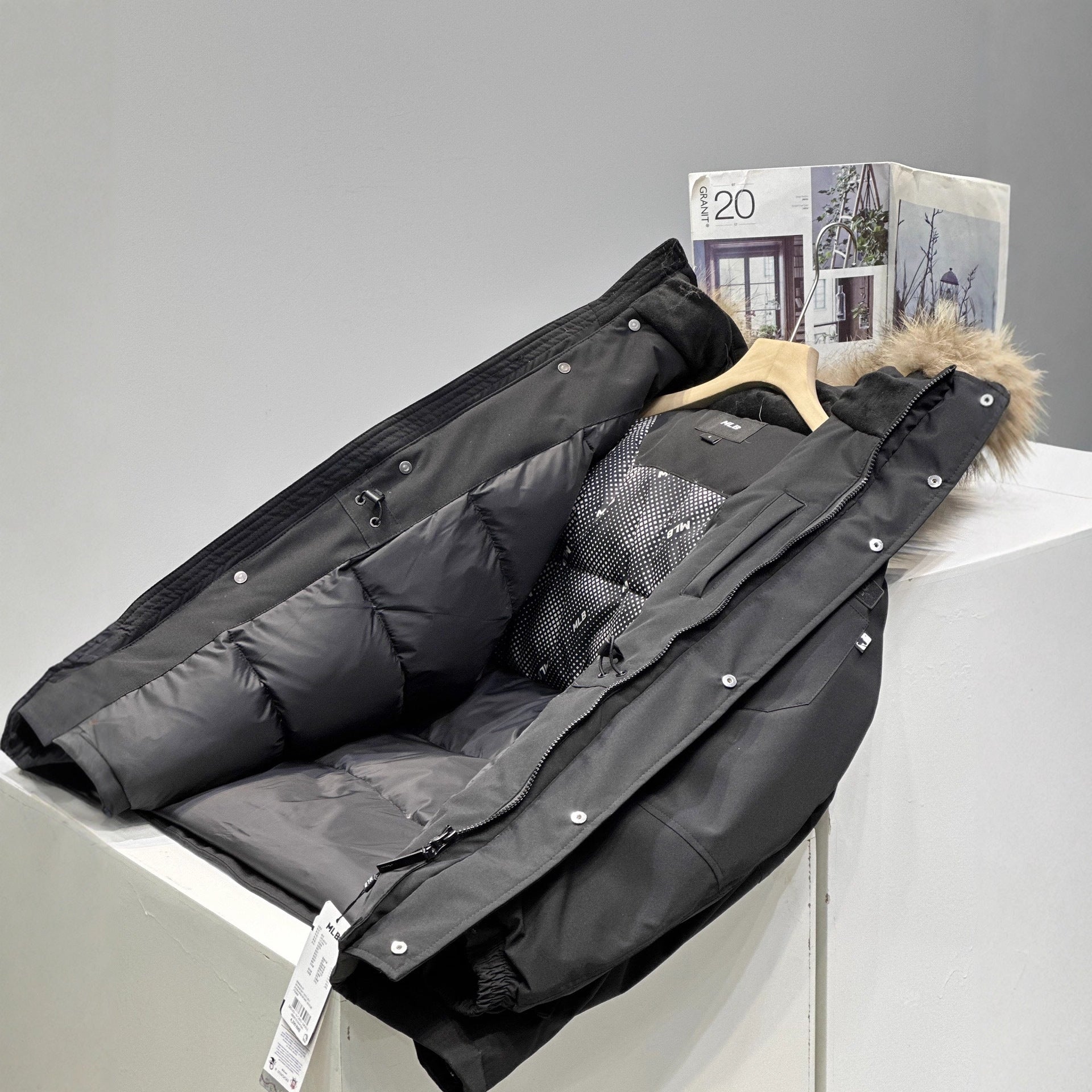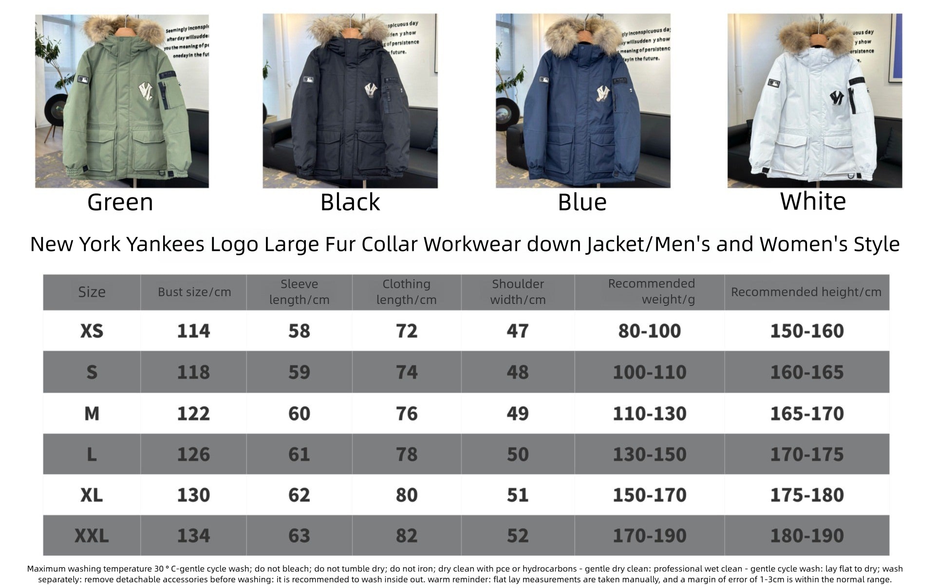 GM-M-LB Unisex Versatile Hooded Down Jacket with Large Fur Collar, Couple's Mid-Length Thickened Waterproof Workwear Coat