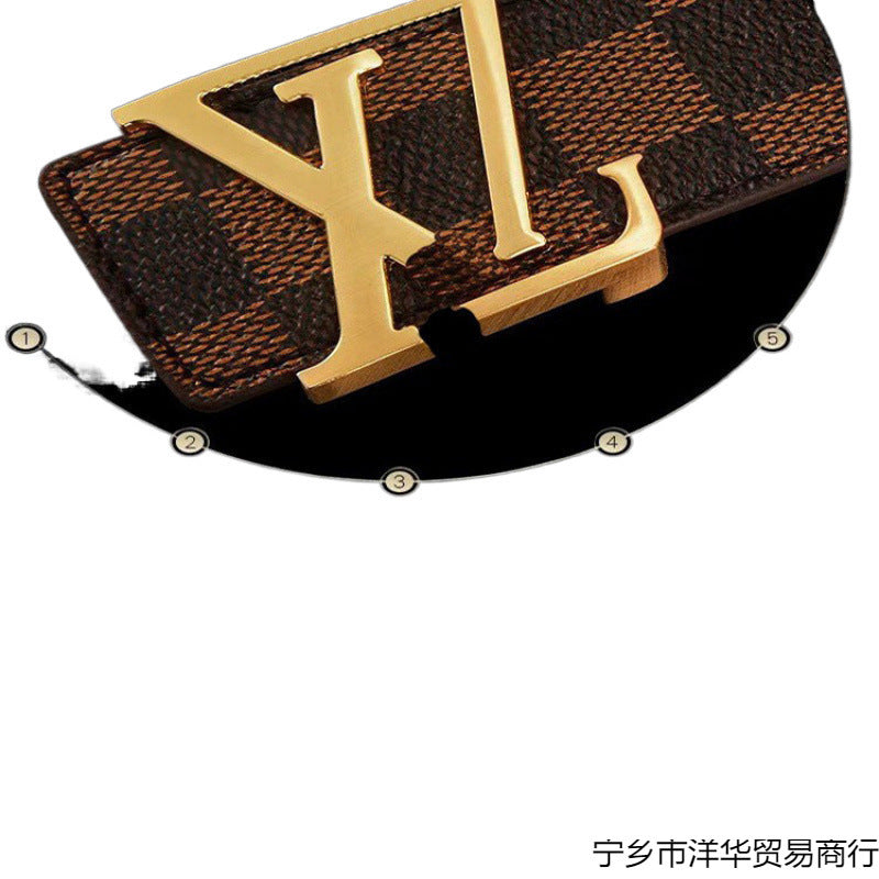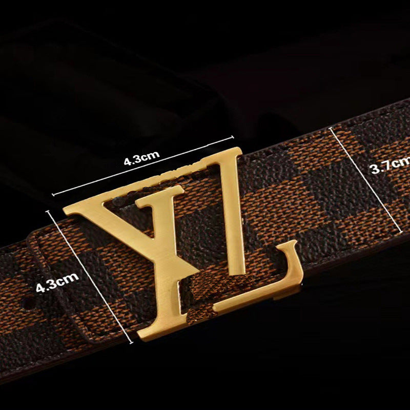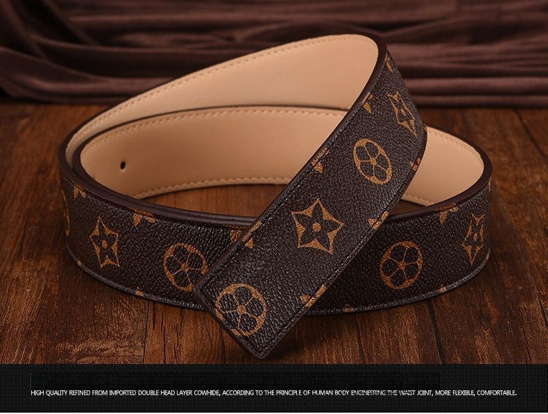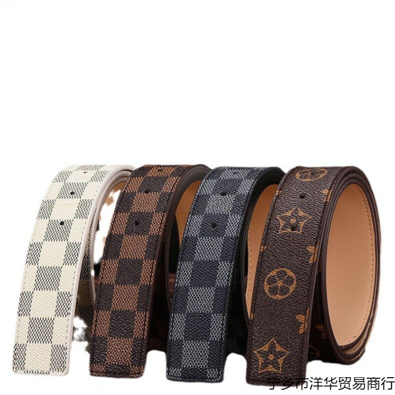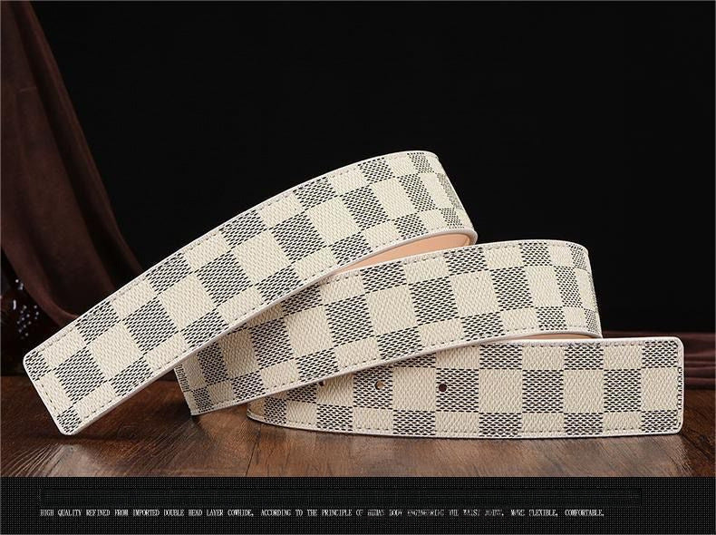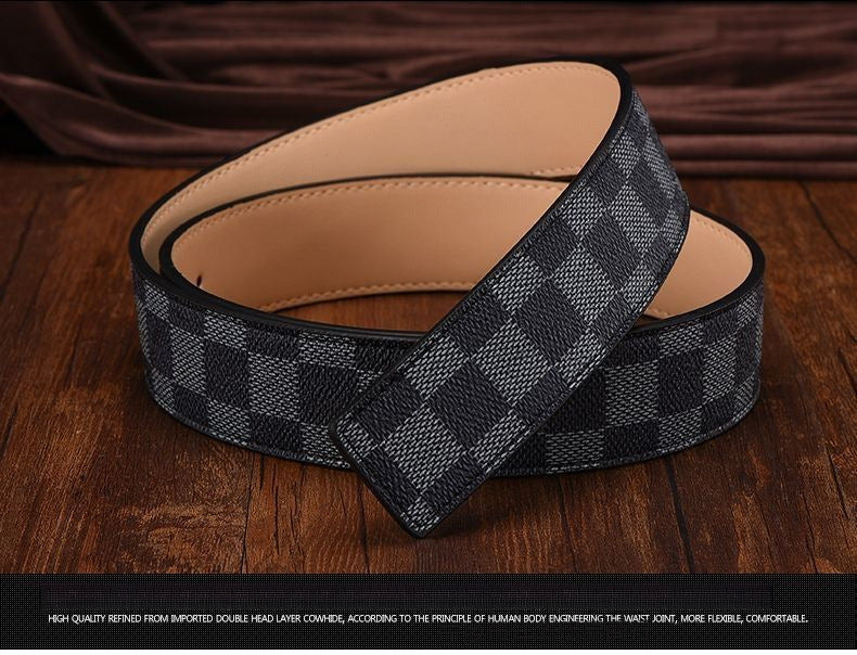 New Men's Belt Smooth Buckle Waist Belt Letter Youth Plaid Pattern Belt Korean Style Trendy Casual Versatile