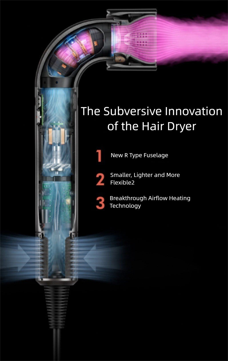New R-Type Elbow Hair Dryer Travel Portable Bladeless Hair Dryer Household Anion High-Speed Hair Dryer H-D-18