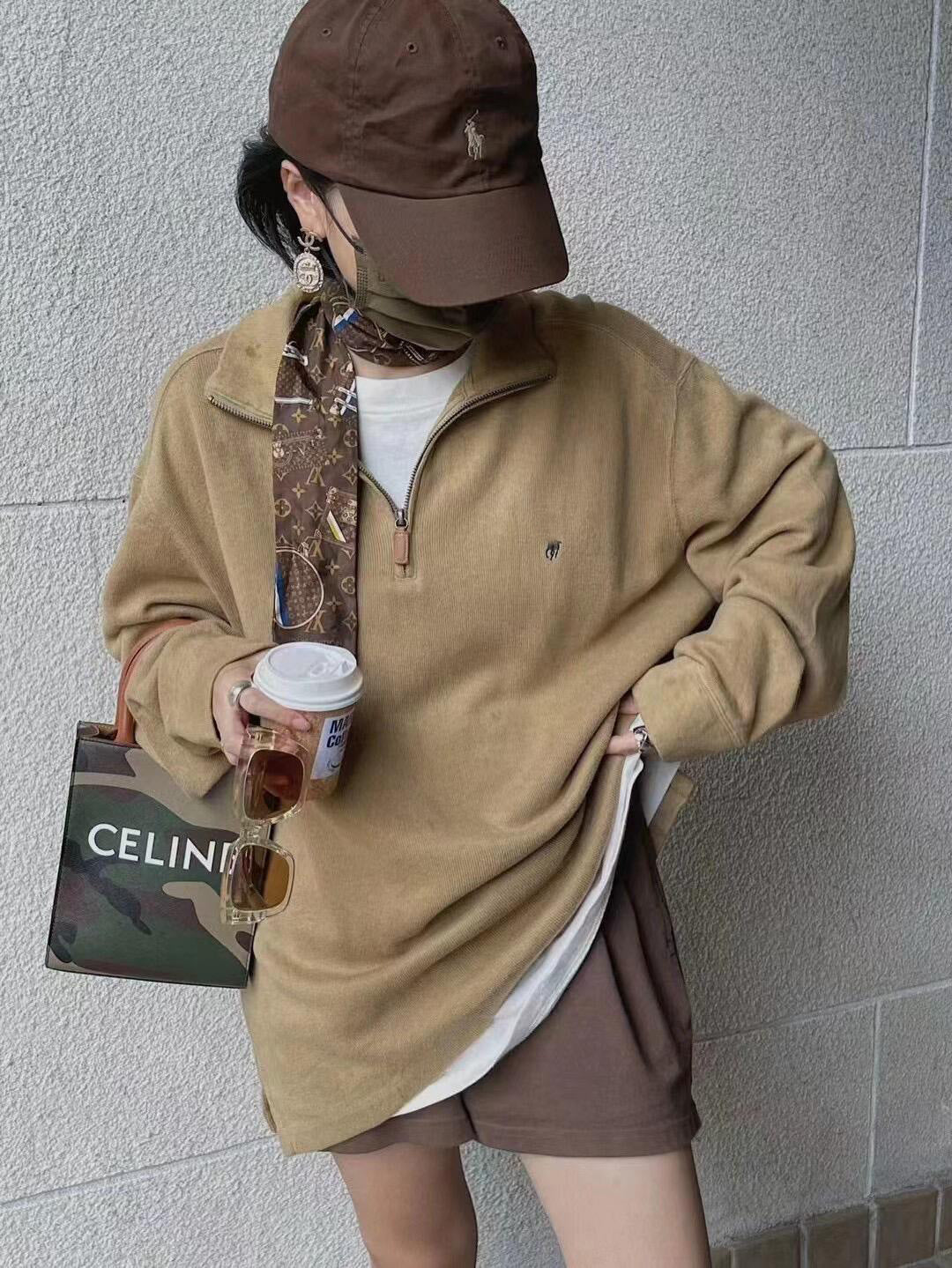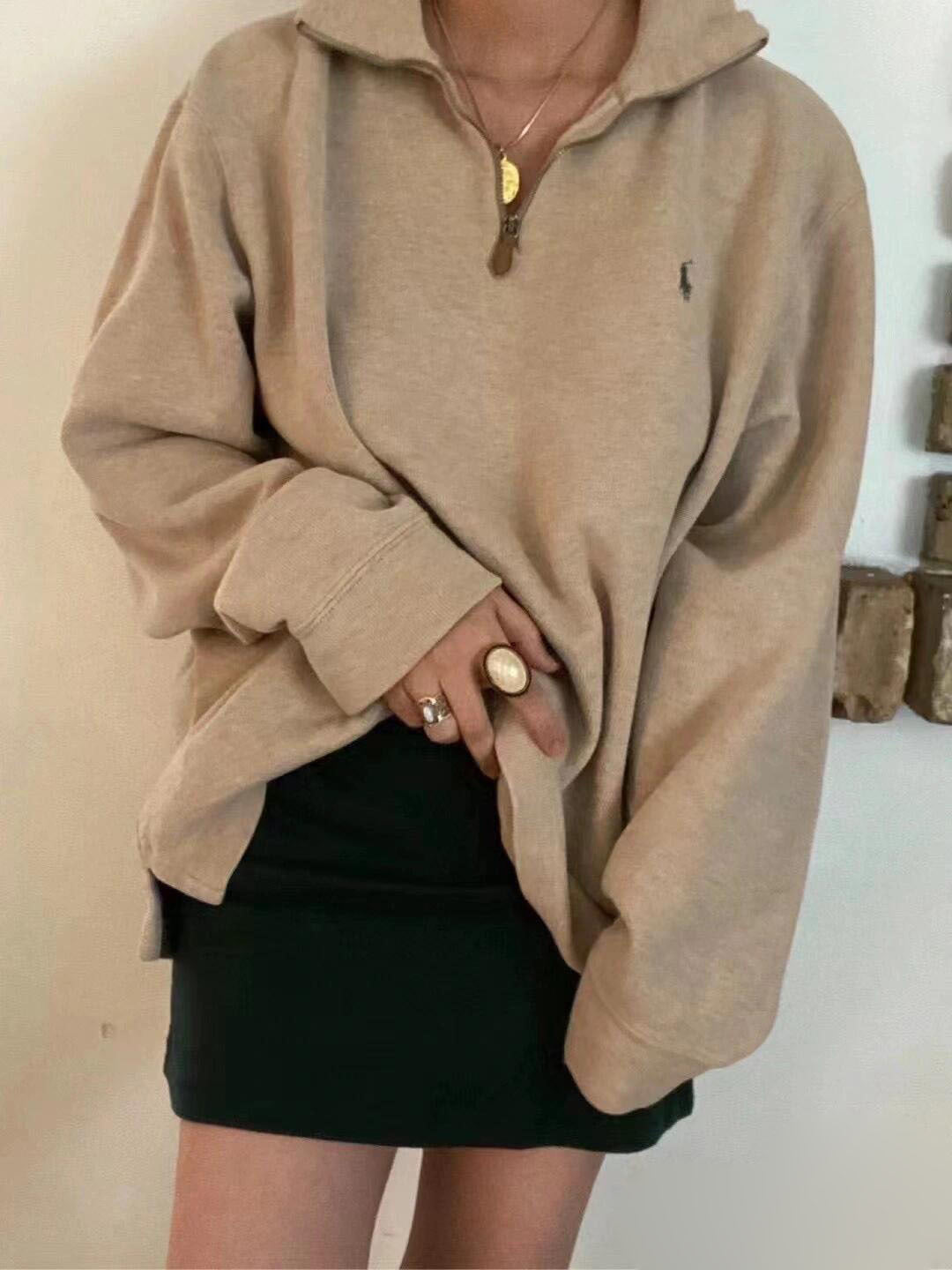RL Ralph Pony Label Retro Couple Sweatshirt Women Long Sleeve Sweatshirt Men Polo Half Zipper Turn-down Collar Loose American Style