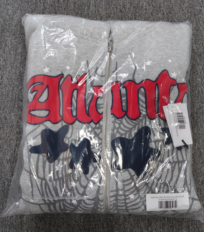 GMSp5der sweatshirt Spider Web Star Print loose Hoodie Zipper Coat Men[High Quality]