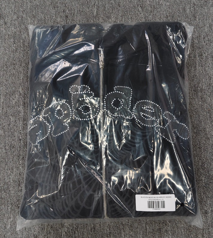 Trendy Brand Hoodie Casual Jacket Letter Black Strap Rhinestone Zipper Sp5-der Sweatshirt Men