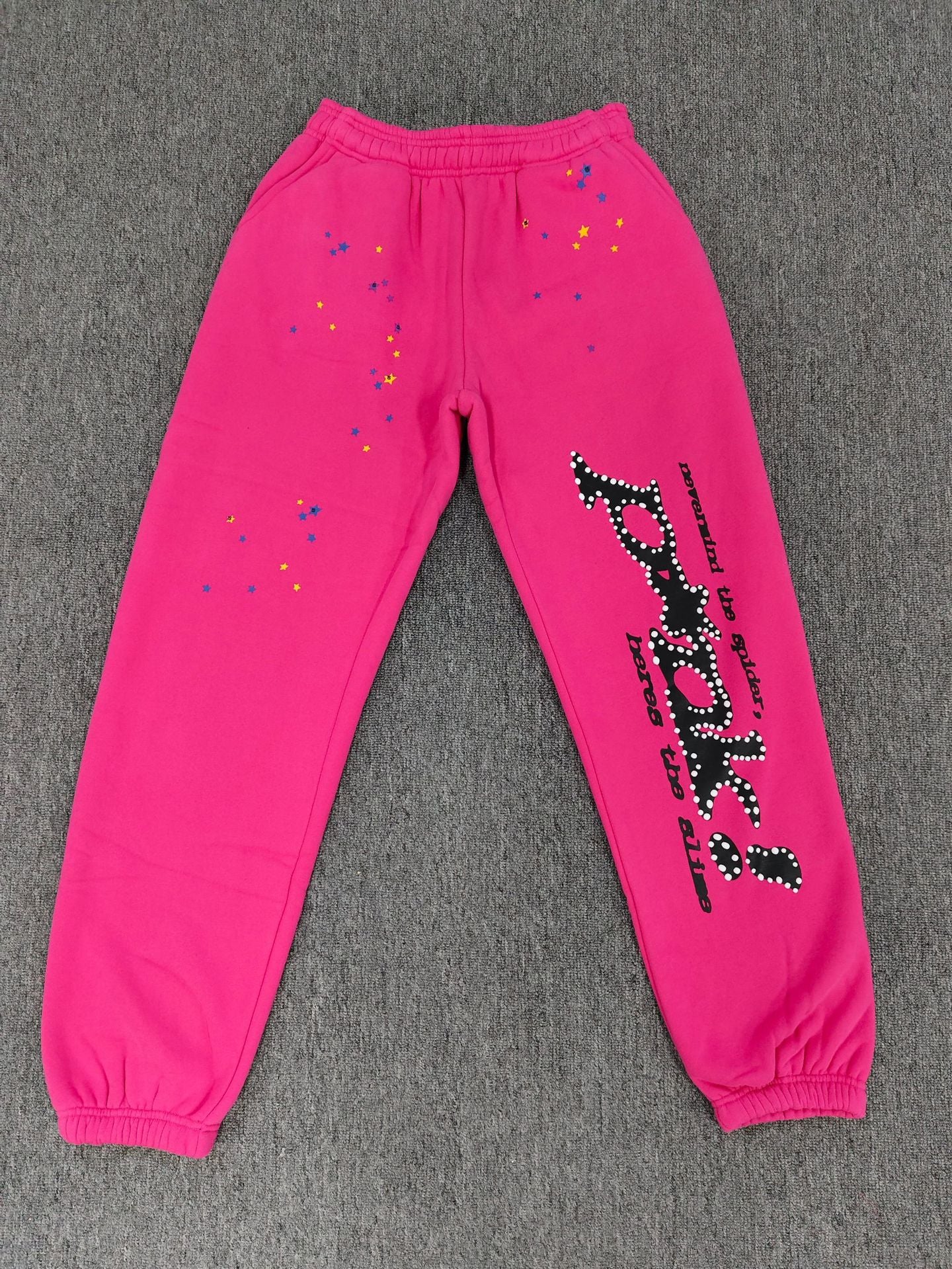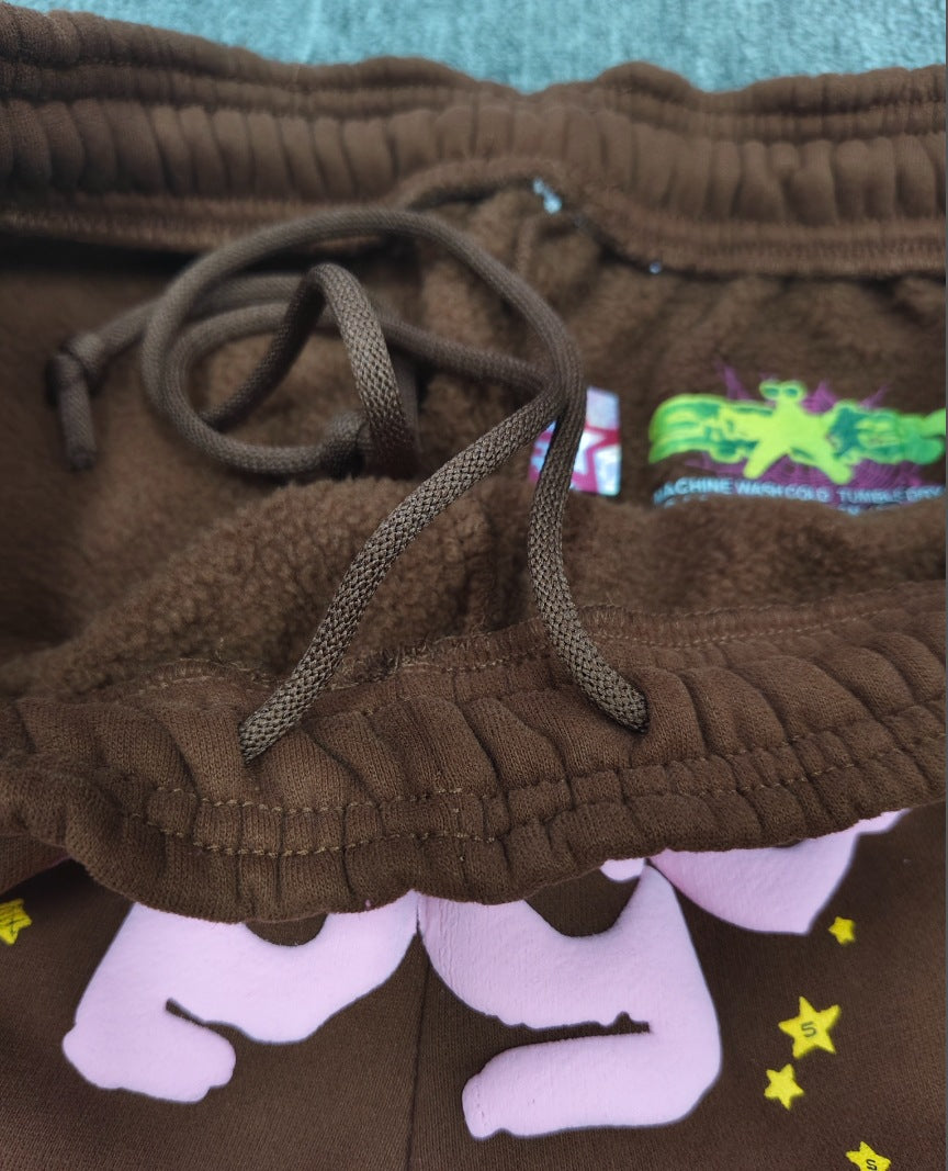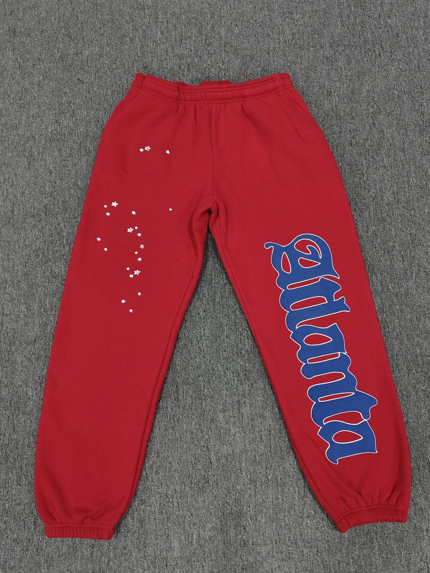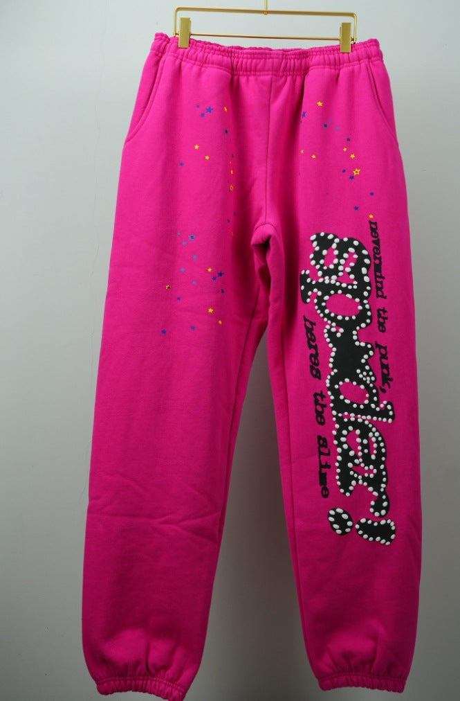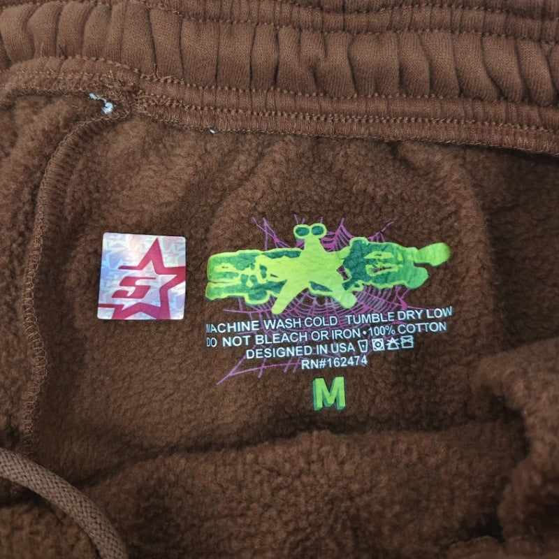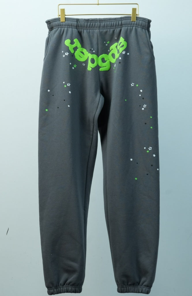[Fleece Lined]Young Thug American Style Brand Sp5DER 555555 Spider Web Foam Print Casual Unisex Sweatpants
